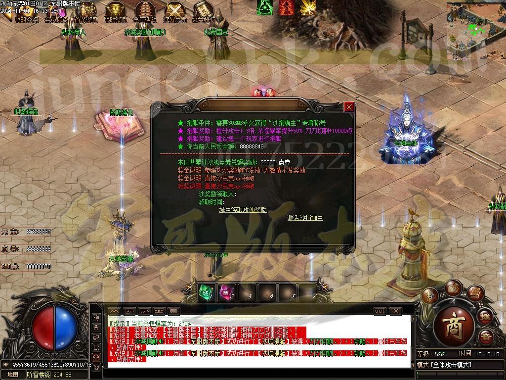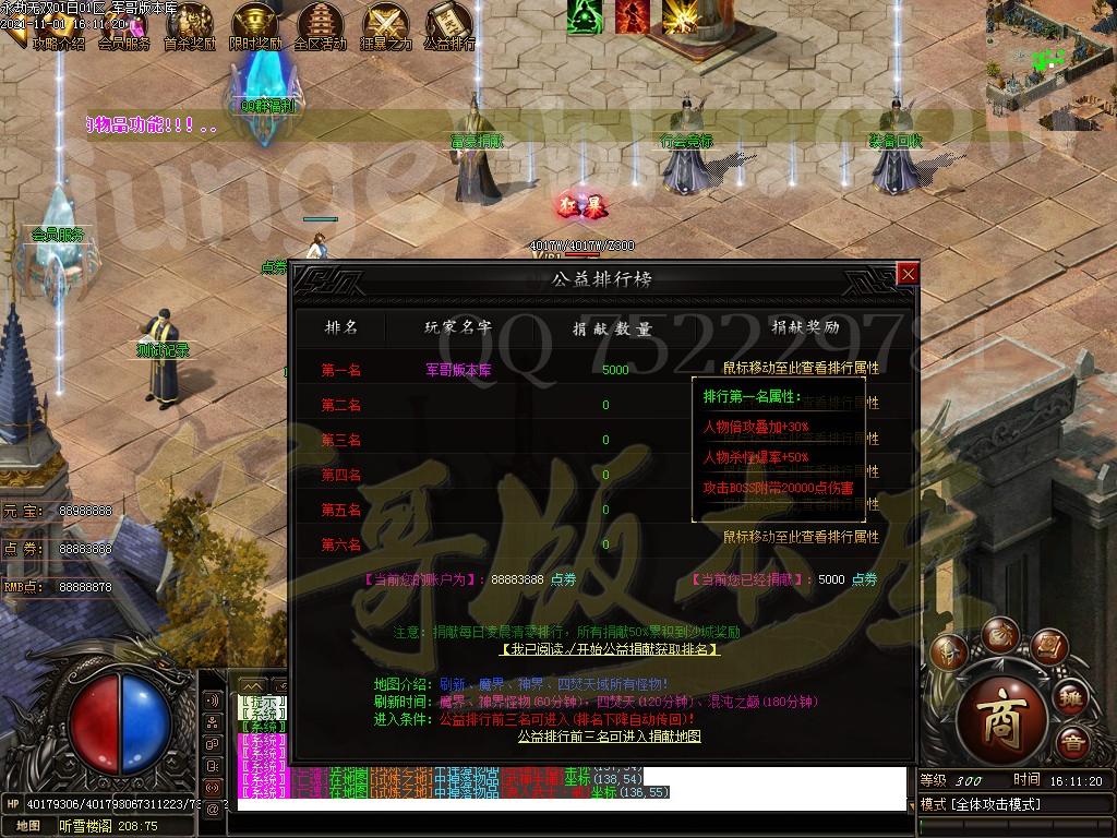 三,公益排行,属性游鞭尸BUFF,建议积极参与,只要点卷捐献,不限制玩家充值!每天12点清零重置数据!