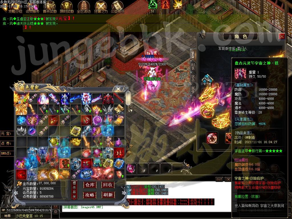 终极勋章20级则是刀刀秒杀怪物1%的血量+30%几率秒杀怪物20%血量,合成需要点卷和BOSS灵魂,游戏暴 + 100点