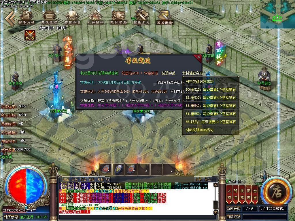 等级 免费泡点300级 突破至400级 每级100*苍蓝石 1000*苍蓝石 突破至500级 每级200*苍蓝石+200w元宝 2000*苍蓝石+2000w元宝 突破至501级 每级200*苍蓝石+1000w元宝+金刚石200w 突破至502级 每级200*苍蓝石+1000w元宝+金刚石300w 突破至503级 每级200*苍蓝石+1000w元宝+金刚石400w 突破至504级 每级200*苍蓝石+1000w元宝+金刚石500w 突破至505级 每级200*苍蓝石+1000w元宝+金刚石600w 等级突破 505级以后突破:苍蓝石*88+2w金刚石 大于505级成功率50% 成功提升1级,失败降低1级 大于520级即可增加1.1倍攻 称号 1大陆满 21.4w金刚石 2大陆满 90 w金刚石(需要15转) 3大陆满 800 w金刚石(需要20转) 4大陆满 4000w金刚石 切割 神豪礼包赠送8级切割 Lv9 苍蓝石*500 金刚石10w Lv10 苍蓝石*500 金刚石15w Lv11 苍蓝石*500 金刚石20w Lv12 苍蓝石*500 金刚石25w Lv13 苍蓝石*500 金刚石30w Lv14 苍蓝石*500 金刚石35w Lv15 苍蓝石*500 金刚石40w Lv16 苍蓝石*1000 金刚石50w Lv17 苍蓝石*1000 金刚石60w Lv18 苍蓝石*1000 金刚石70w Lv19 苍蓝石*2000 金刚石80w Max 苍蓝石*3800 金刚石100w ============================================================