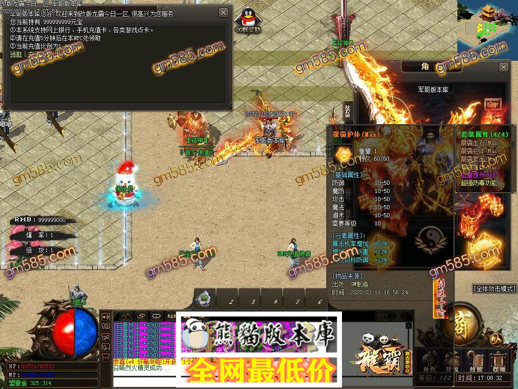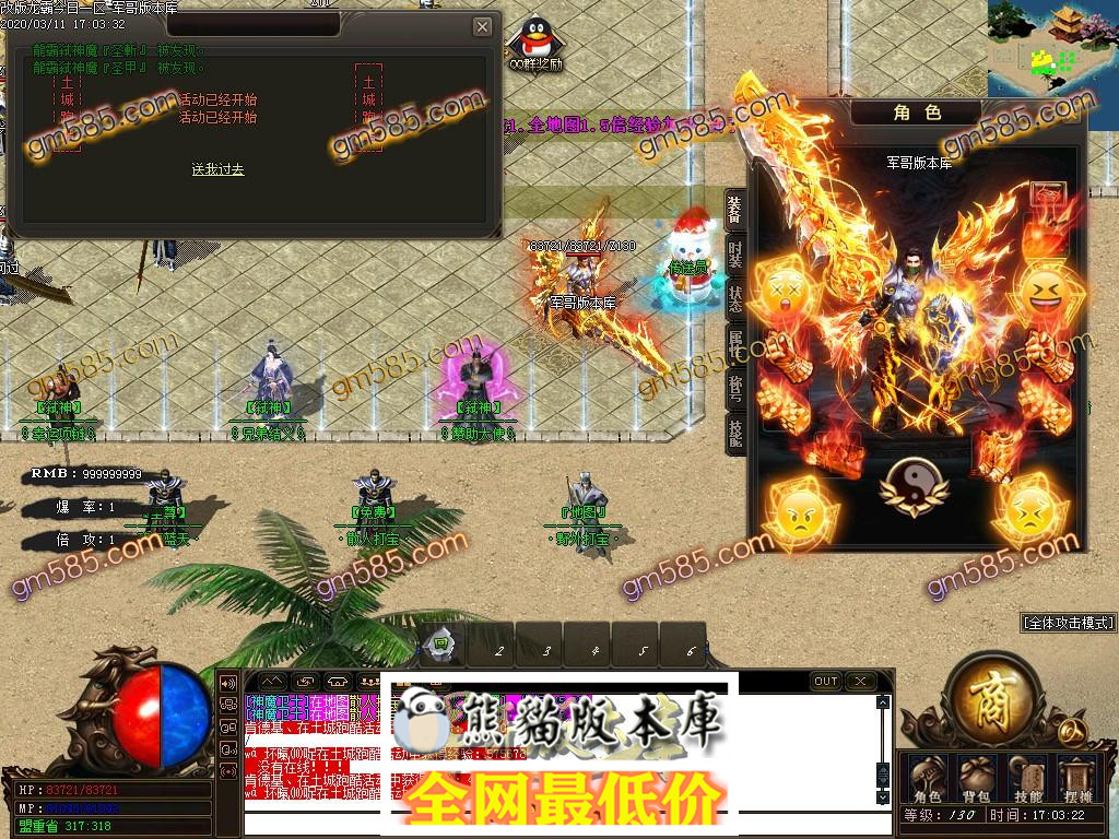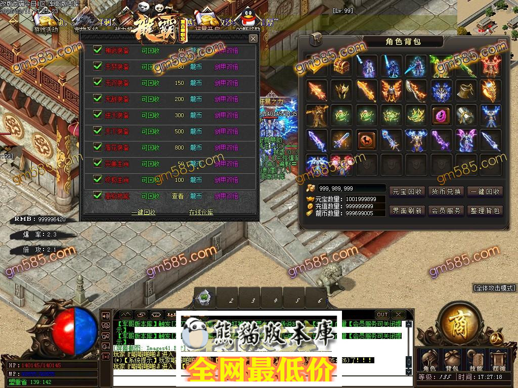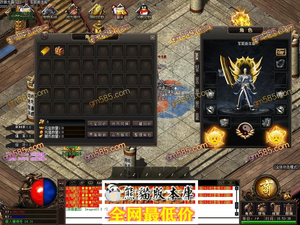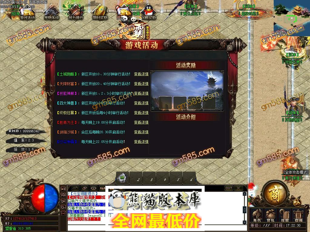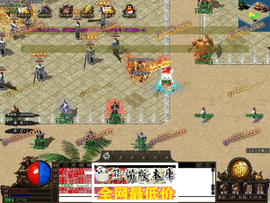 【元宝比例】:本服龍币比例1:500,均可回收,另有多充多送优惠活动哦! 【攻沙设置】:新区开放第2天合区,晚上20点整准时攻沙,奖励丰厚! 【攻沙玩法】:去除以往枯燥无味的城主奖励,独创新鲜刺激的沙城福利系统,越往后面攻沙奖励越丰厚~ 【帐号】:帐号请及时设置二级密码,请勿将帐号轻易告诉他人,不要使用过于简单的账号密码.例如1234.1111111.aaaaaaa.abababab等! 【封杀外挂】:请勿乱下载或者使用加速外挂等,软件很多包含木马,如果发现开启非法外挂或者脱机者不管你是否花钱一律封号处理,绝不手软! 【盾牌系统】:外观帅气,把妹必备,本服决胜关键,玩家杀人杀怪必须追求的东西,能打能抗,每个阶段会获得不同的外观。 【宝物系统】:每个宝物都有不同的属性,装备属性平衡,适合各种玩家,友情提示:均衡发展! 【限时奖励】:本服为回馈玩家,击杀BOSS奖励限时回收奖励,永久回收奖励,轻轻松松赚取高额回报! ============================================================