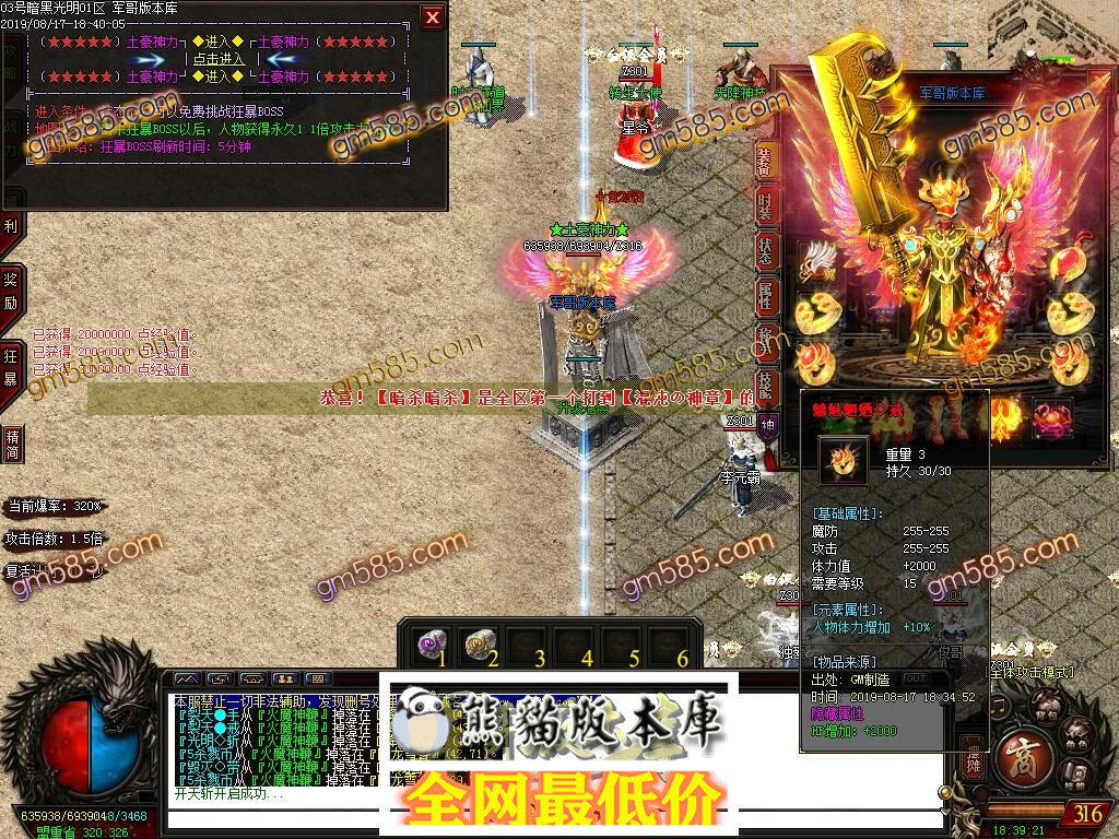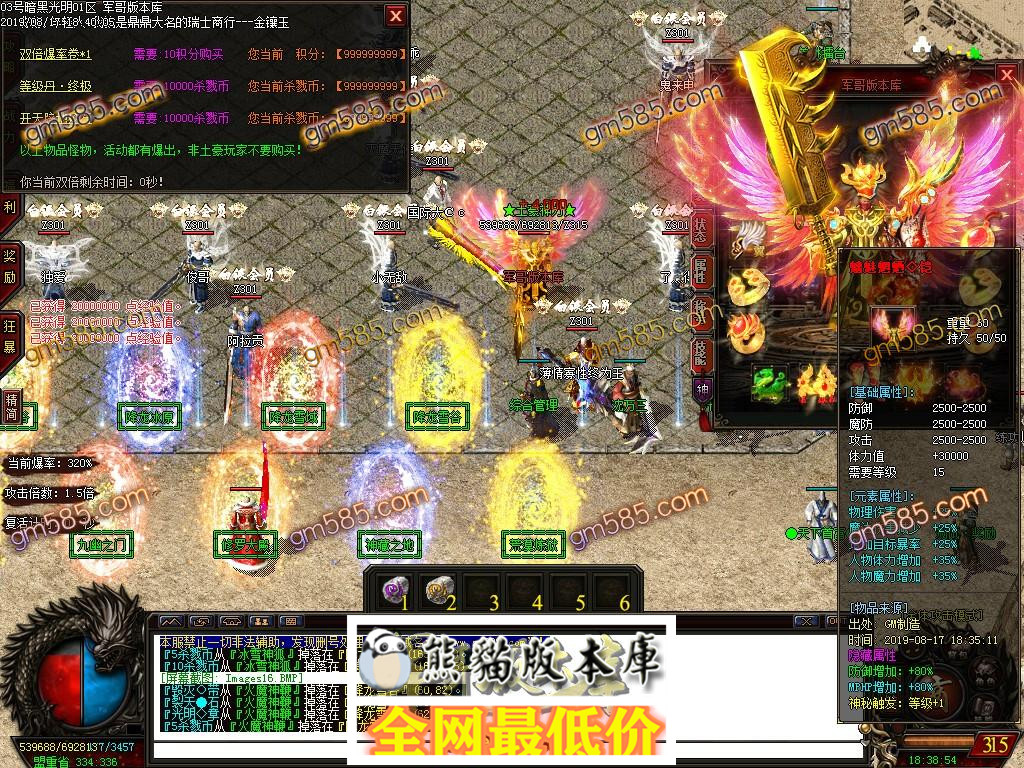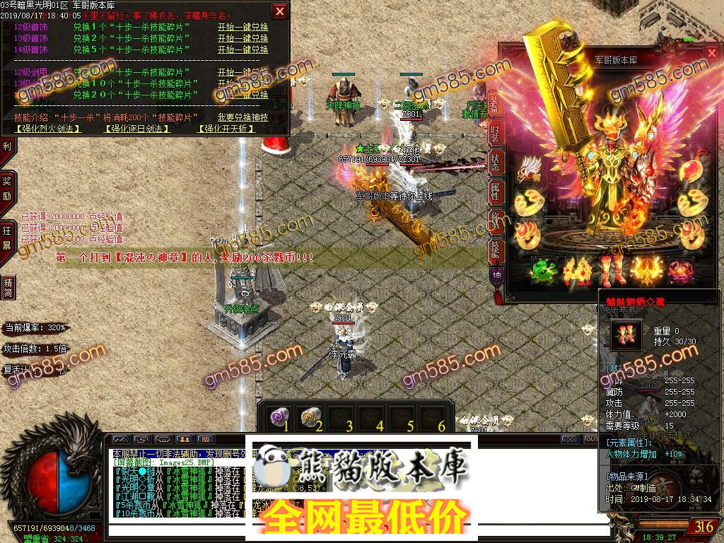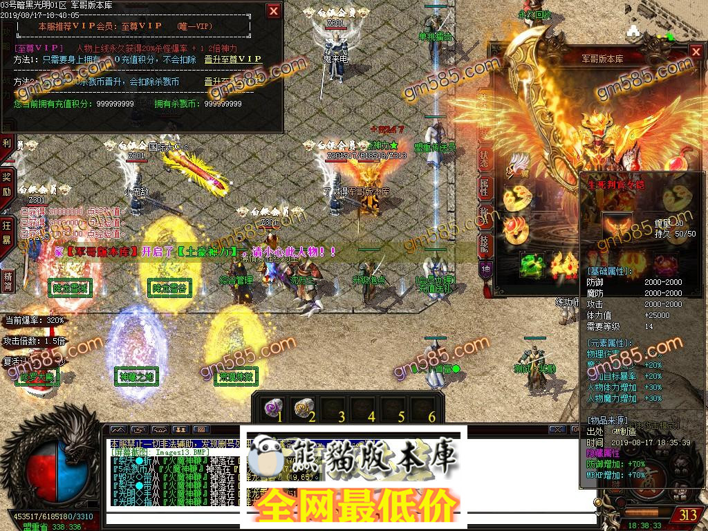 【游戏介绍】2019独家特色杀戮光明单职业,开启单职业传奇新篇章! 【充值比例】测试期间打到装备回收的元宝,元宝开区领取80%,还有空投大礼包!元宝1:10万 杀戮币1:100 充值积分1:1 【攻城奖励】新区二天后合区,晚上8点准时攻城!新区攻城奖励666+红包! 【开区时间】每天稳定开放五个区!一区9:00-二区12:00-三区15:00-四区19:00-五区22:00! 【开区时间】每天稳定开放五个区!一区9:00-二区12:00-三区15:00-四区19:00-五区22:00! 【游戏介绍】上线领取Q群礼包,赠送全套高级技能+刀刀切割称号,祝你打宝起飞! 【游戏介绍】上线领取Q群礼包,赠送全套高级技能+刀刀切割称号,祝你打宝起飞! 【游戏介绍】超多隐藏元素隐藏地图,全新特效装备 重金定制全新装备好看不花哨 【游戏介绍】担保交易请找群管理,被骗后果自负!担保交易请找群管理,被骗后果自负! 【游戏介绍】定制封挂插件 完美封杀一切外挂!定制封挂插件 完美封杀一切外挂! 【进群规则】超多隐藏元素隐藏地图,全新特效装备 重金定制全新装备好看不花!