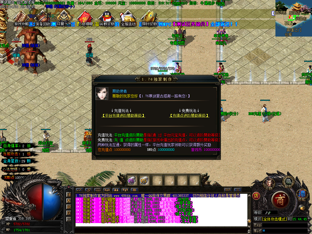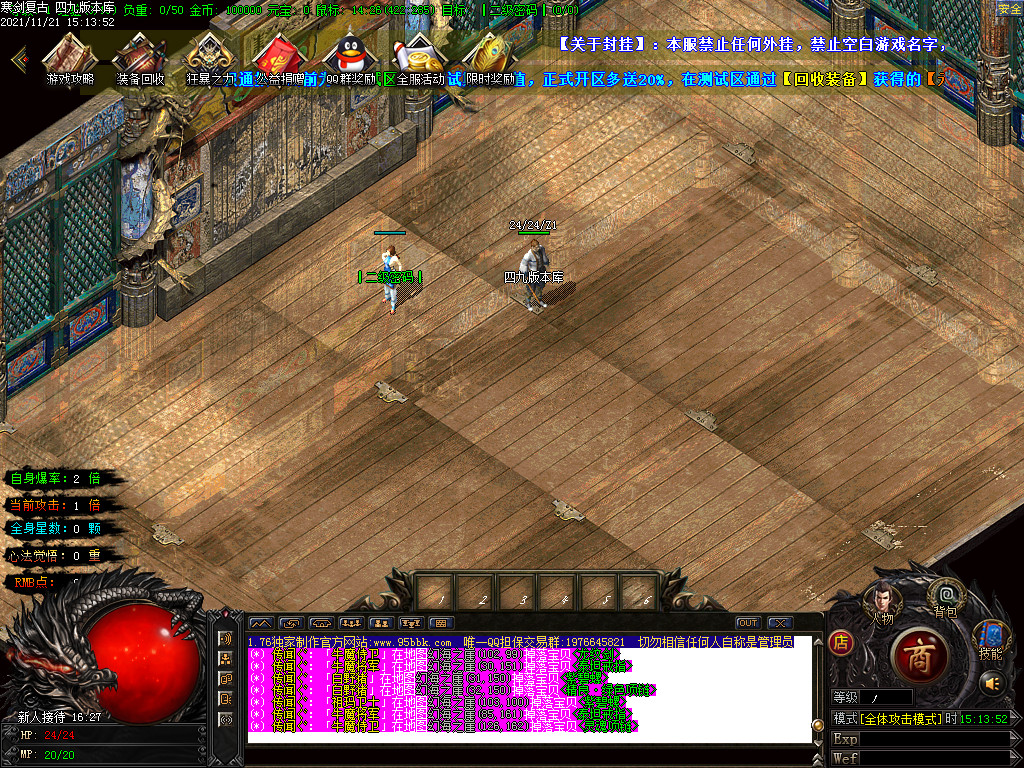 【关于封挂】:本服禁止任何外挂,禁止空白游戏名字,如发现不管是否充值,立即永久封号。