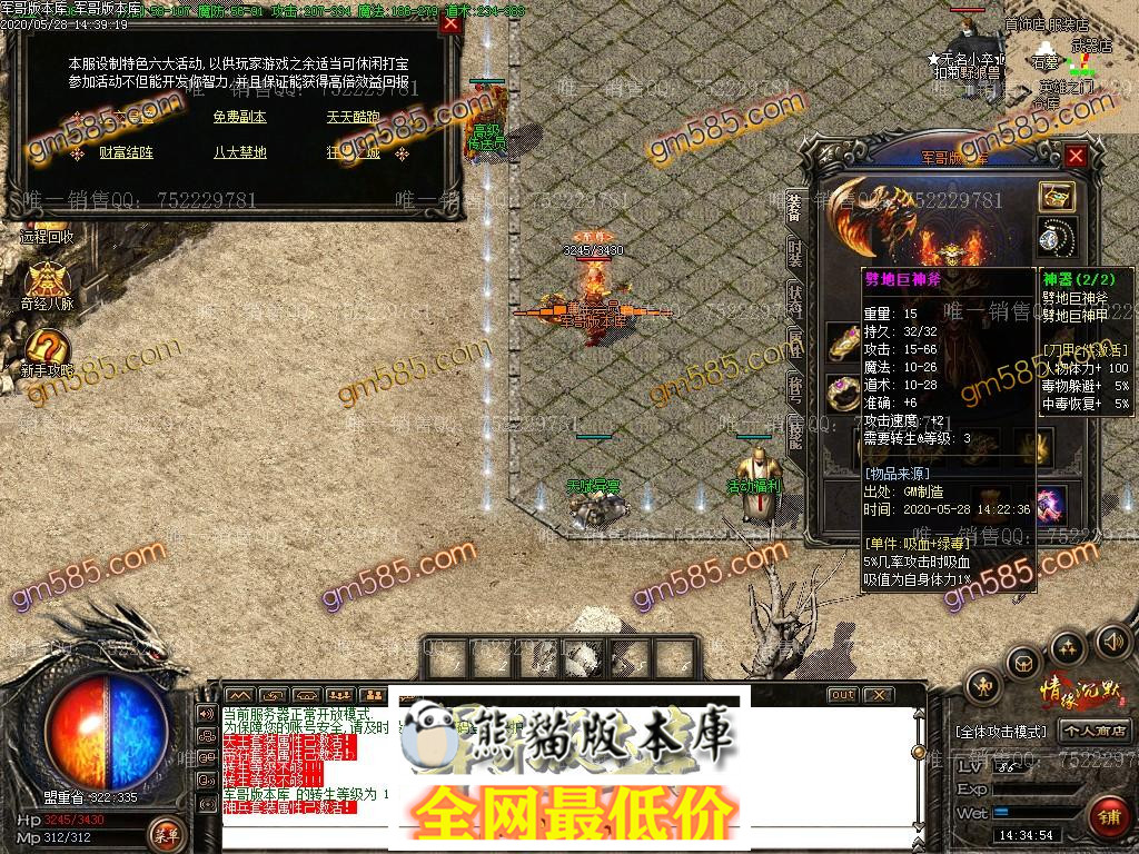 提示:特戒、运链、12生肖奇门、终级套装BOSS爆出,本服特殊装备爆率比较低请勿与变态快餐服相提并论!