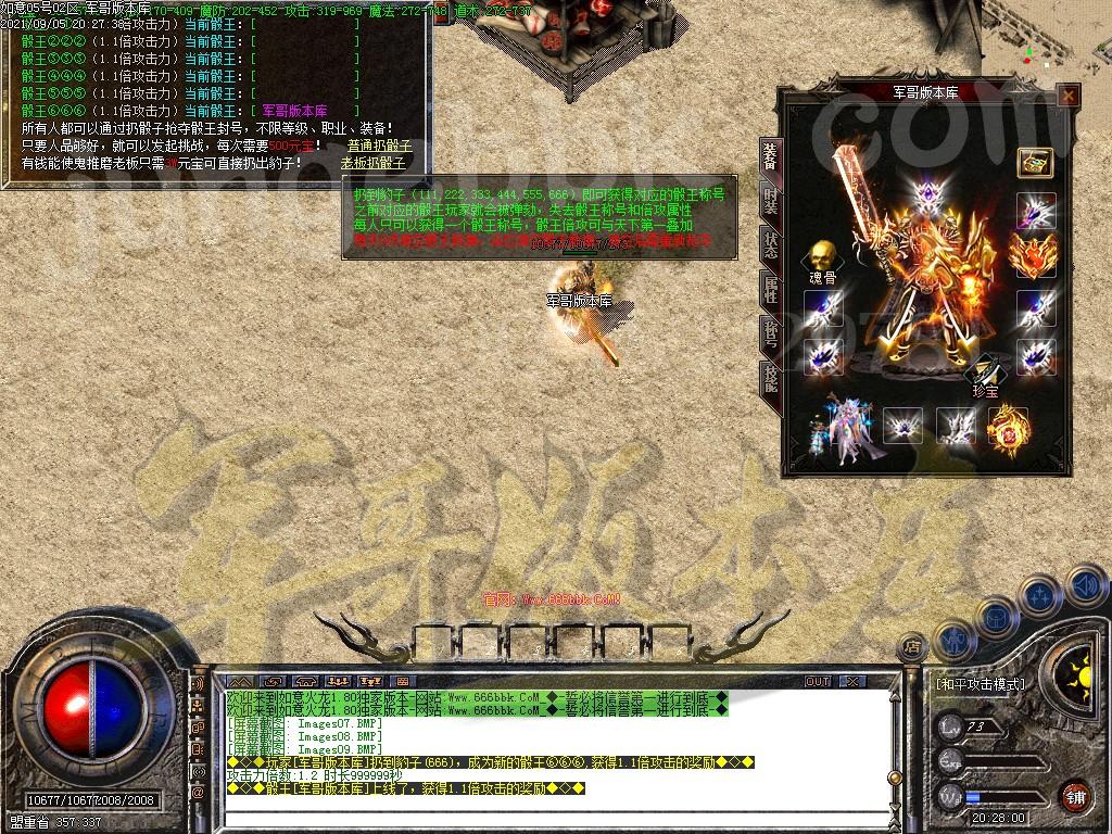 300点捐个沙捐领取永久在线回收宝箱。88888元宝开个狂暴。200点开个1.1攻击骰王