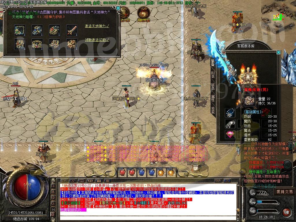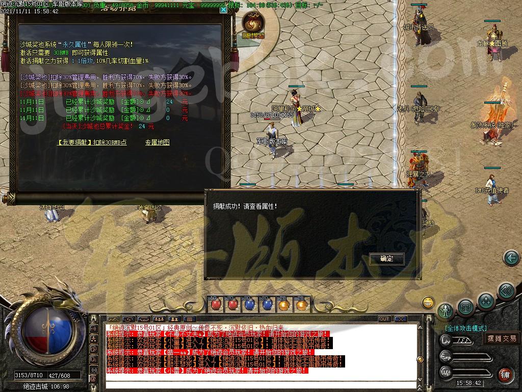 【游戏简介】:2022独家绝迹三职业沉默版本!三职业平衡设计!玩法新颖! 【游戏简介】:本服充值方式:网站可以充值金币。1:20万金币。 【游戏简介】:本服元宝只有打BOSS、绝迹神塔、活动系列、会员签到等方式获得,元宝价格玩家自己定 【游戏简介】:每日开服时间:10.00 15.00 21.00 【游戏简介】:本服无托,无待遇,无GM!任何自称是GM,或者联系方式都是骗子! 【游戏简介】:为了玩家账户和财产损失,请务必设置二级密码保护账号 【游戏简介】:本服全网独家原创,团撸BOSS,多种升级模式,全天活动材料物品打不完!. ============================================================