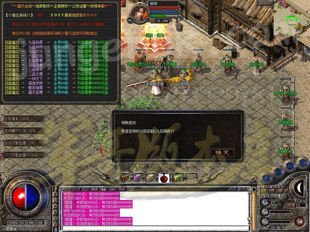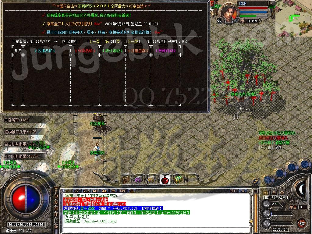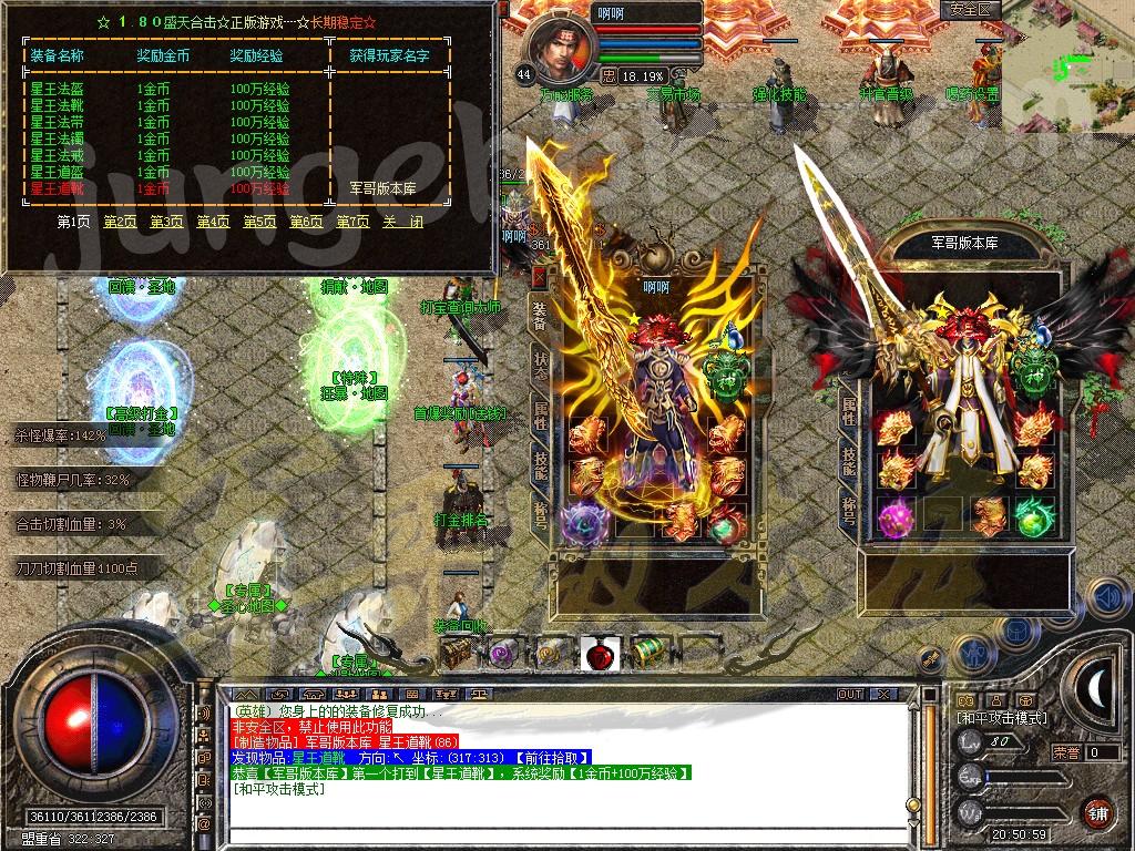 挑战全网星王合击的爆率,爆率永久开放给玩家,坚持做真正公平公证良心大服