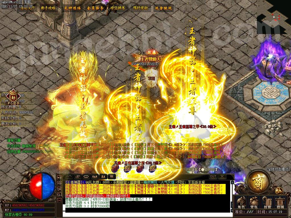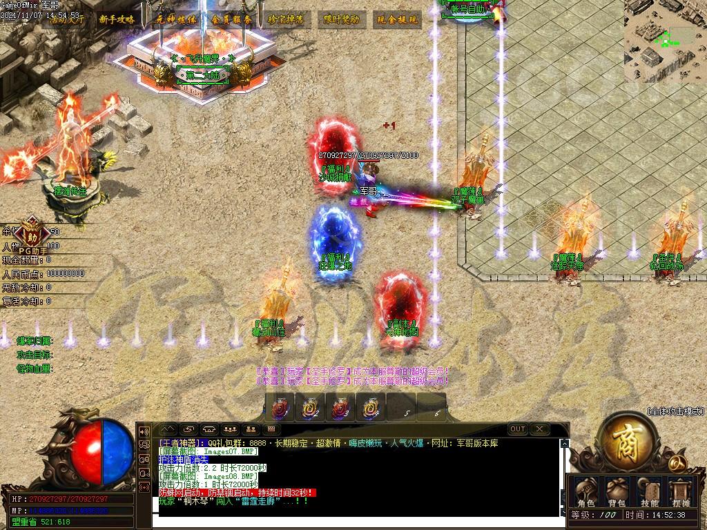 充值40元,30开启沙城捐献 获得刀刀切割怪物500万 怪物爆率增加100%