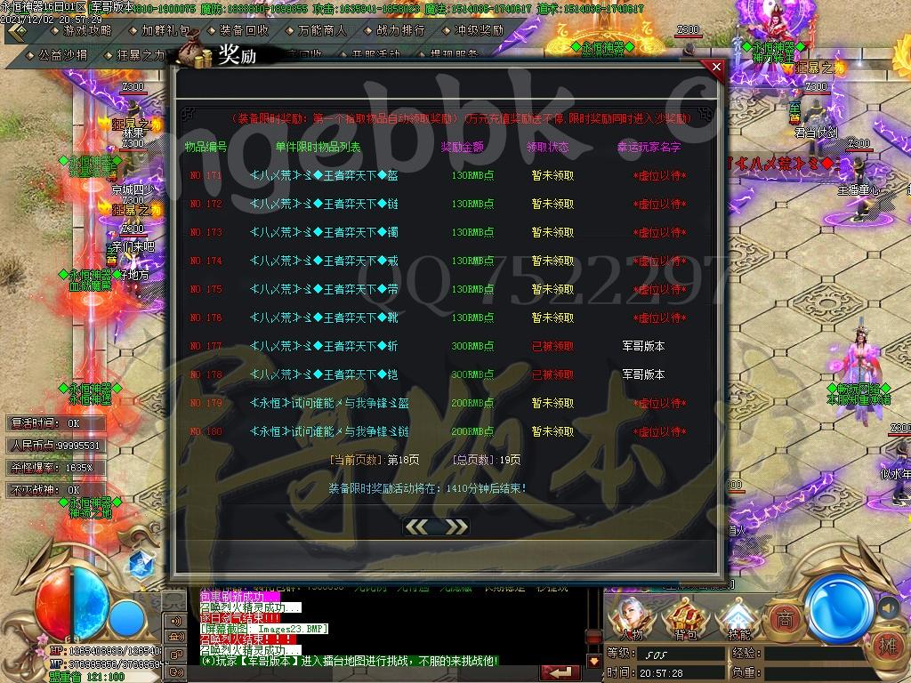 有条件的一定先沙捐领取这个,打怪速度会变快很多。狂暴赠送爆率和倍攻和伤害吸收,坑米必开!