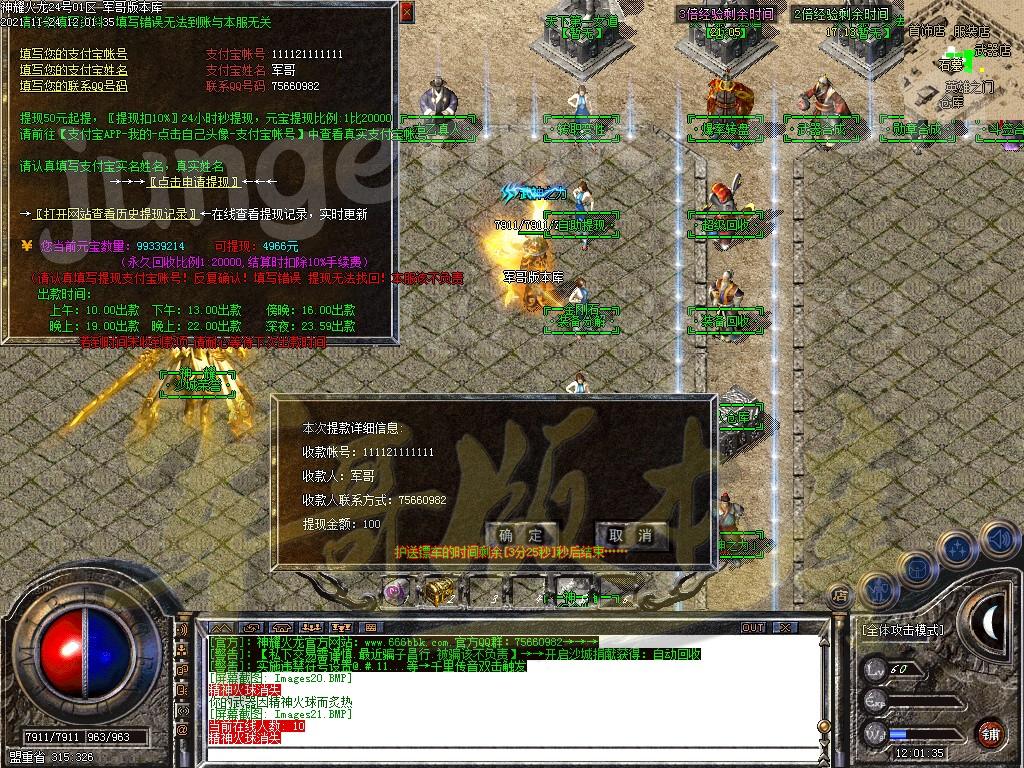 金币充值比例 1 :10   版本为正常开区端有问题联系QQ 616102345  处理