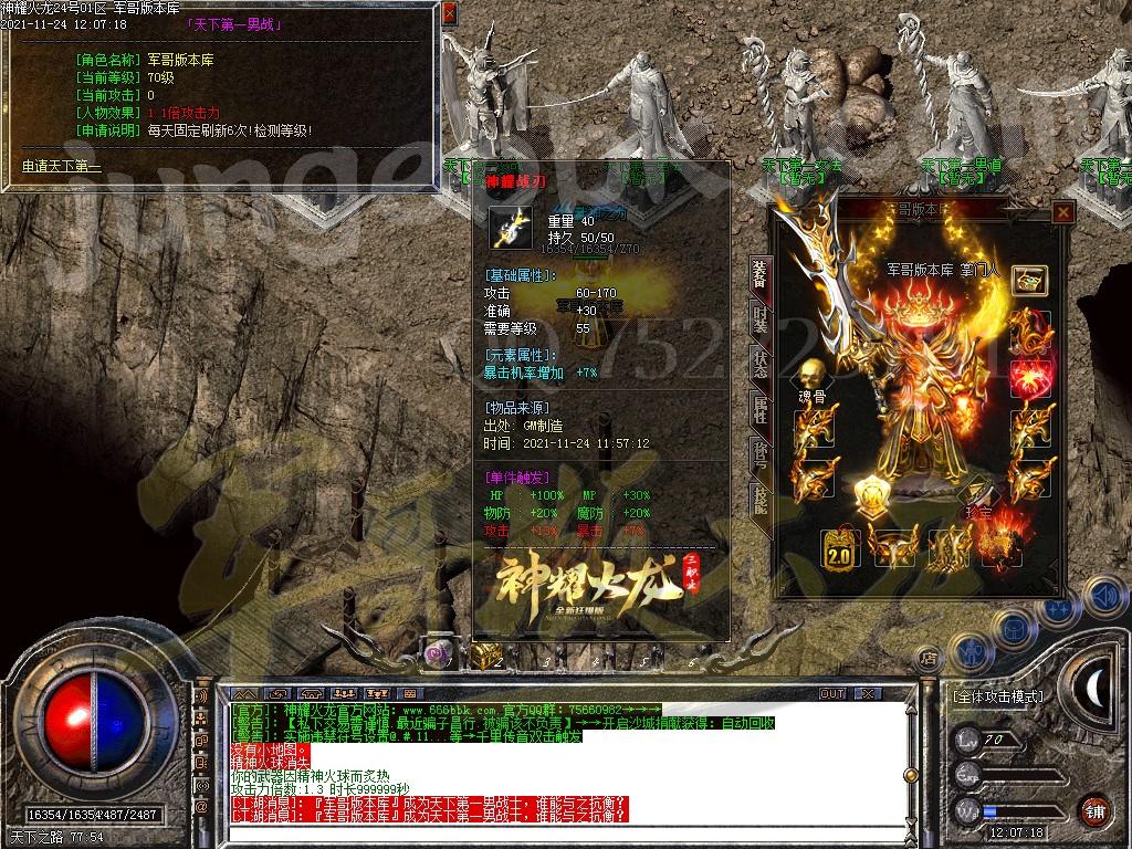 7.新区达到70玩家奖励 《神耀火龙甲》达到75玩家奖励《神耀战刃》