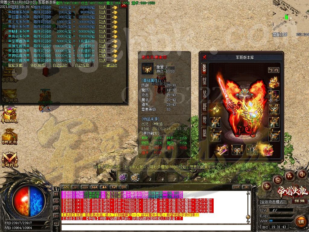 [GOM引擎] 19-315独家帝喾火龙复古三职业传奇版本-带假人-PG/esp插件-光柱-自动回收拾取