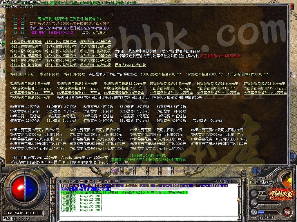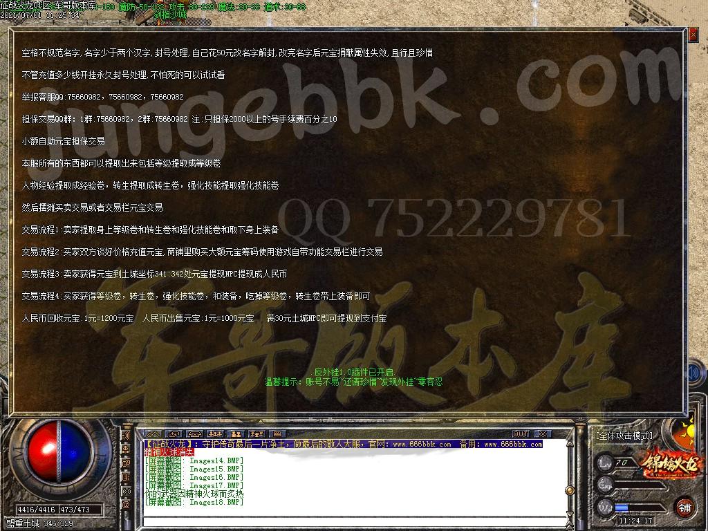 金币充值比例 1 :10 版本为正常开区端有问题联系QQ 616102345 处理