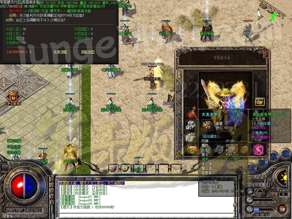 版本内包含两个压缩包,分别是PG插件的版本和esp插件的版本,请自行选用PG或Esp的压缩包对应合适的插件即可使用! 游戏介绍 ::1.80啸天火龙-单件属性-极品最高加5,散人天堂,全新等你来战 充值比列 ::元宝1:1000网银多送%100 啸天币1:100 系统多充多送奖励 装备介绍 ::火龙→风云火龙→精武火龙→终极装备啸天火龙(装备全靠打无隐藏) 游戏特色 ::9000血爆火龙 ‖12000血爆风云‖15000血以上爆一切,爆一切。活动不断 开区公告 ::每天五个新区,每天上百条广告,区区激情,绝对公平,绝对火爆 游戏声明 ::本服无任何隐藏消费陷阱-绝不卖装备,等级,充值一律平台,任何都是骗子。 合区设置 ::新区第二天下午合区晚上集体攻沙,首次奖励200W元宝20000啸天币 防骗防盗 ::本游戏中设置二级密码之后不要告诉其他人,以免损失,切记切记切记 ============================================================