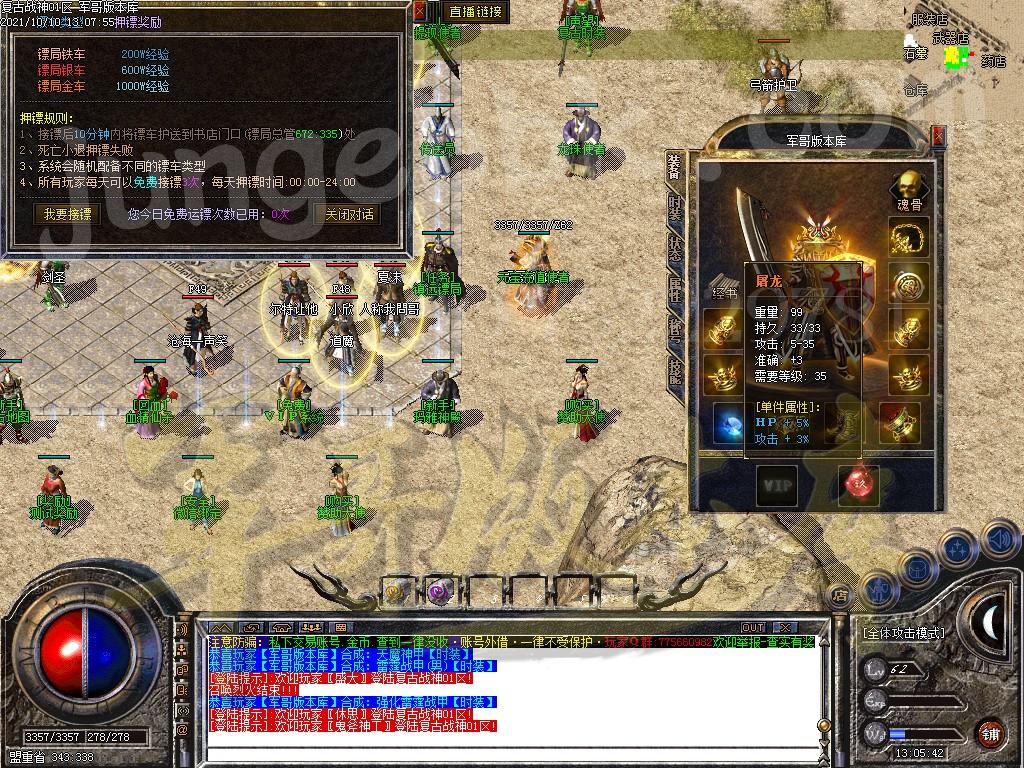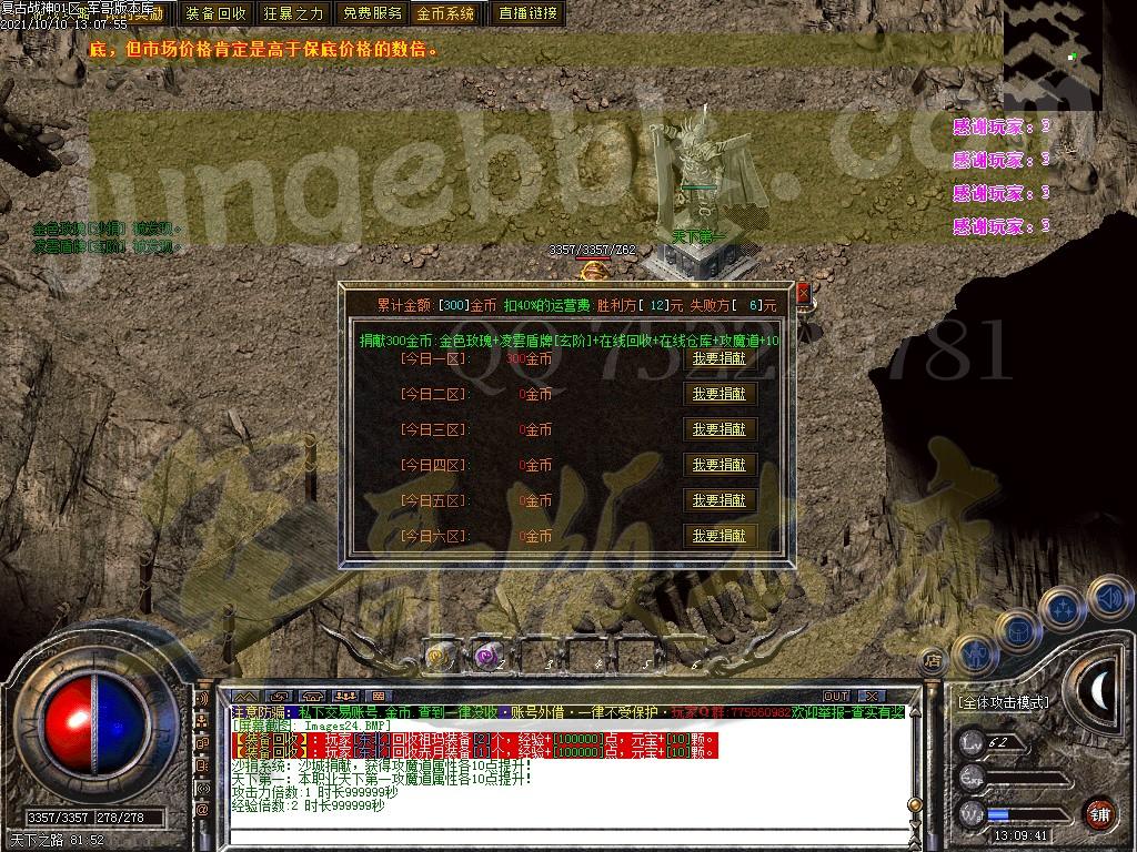 金币充值比例 1 :10   版本为正常开区端有问题联系QQ 616102345  处理