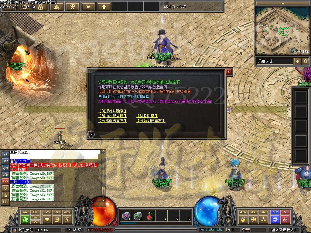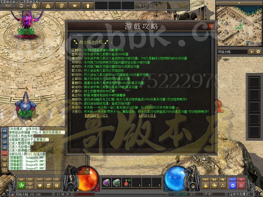 战士还有一种另类玩法 就是堆高攻击  带暴击 疯狂 幸运BUFF 单纯的靠四级烈火秒杀别人。 土豪喜