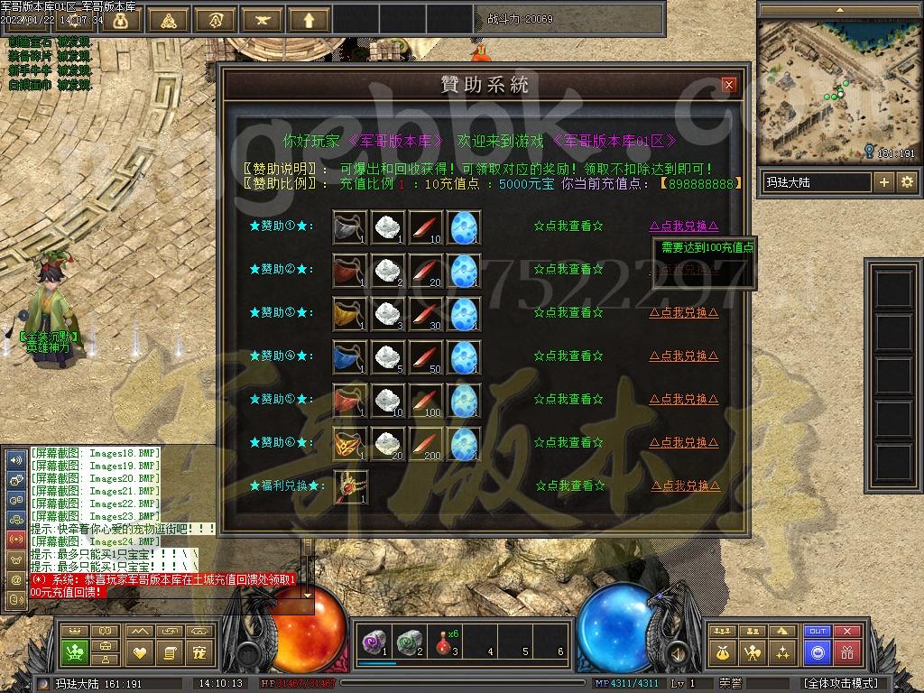 金币充值比例 1 :10   版本为正常开区端有问题联系QQ 616102345  处理