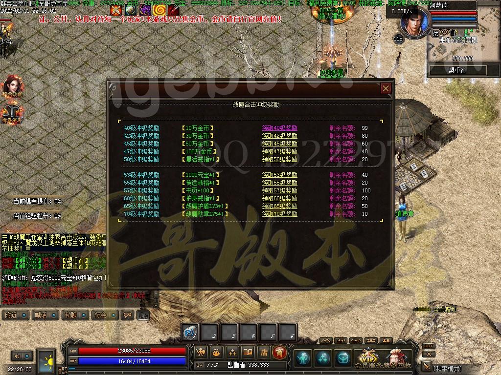 金币充值比例 1 :10 版本为正常开区端有问题联系QQ 616102345 处理
