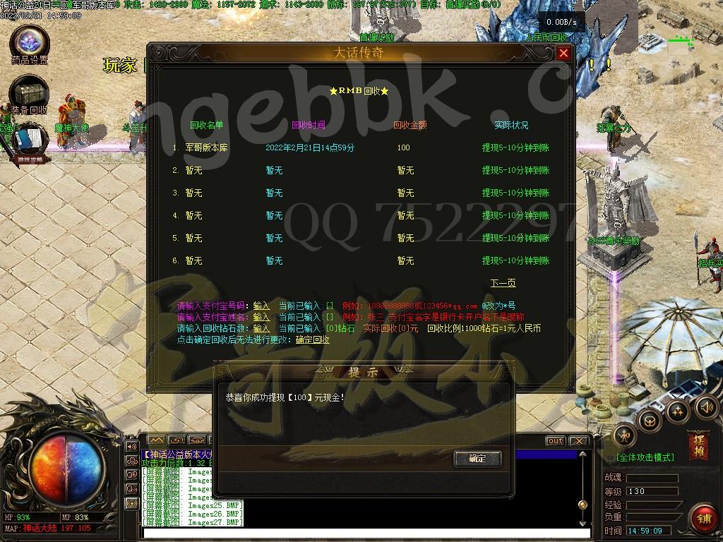金币充值比例 1 :10   版本为正常开区端有问题联系QQ 616102345  处理