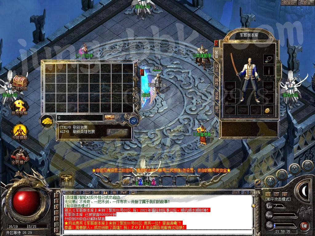 [BLUE引擎] 18-661独家大服1.80聚友合击星王+3传奇客户端-带假人-光柱-自动回收-沙城捐献_新BLU