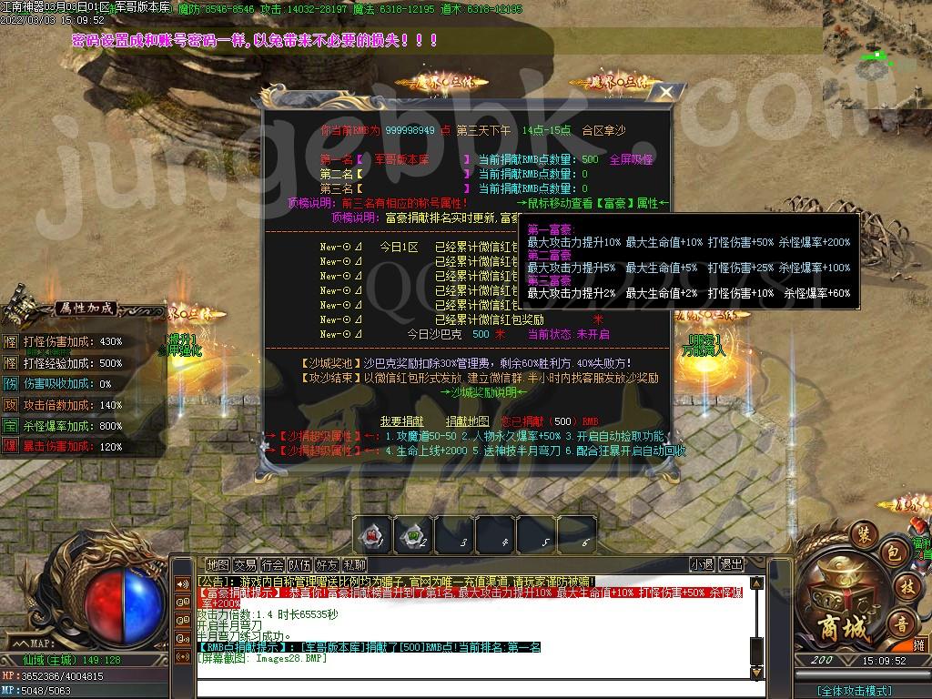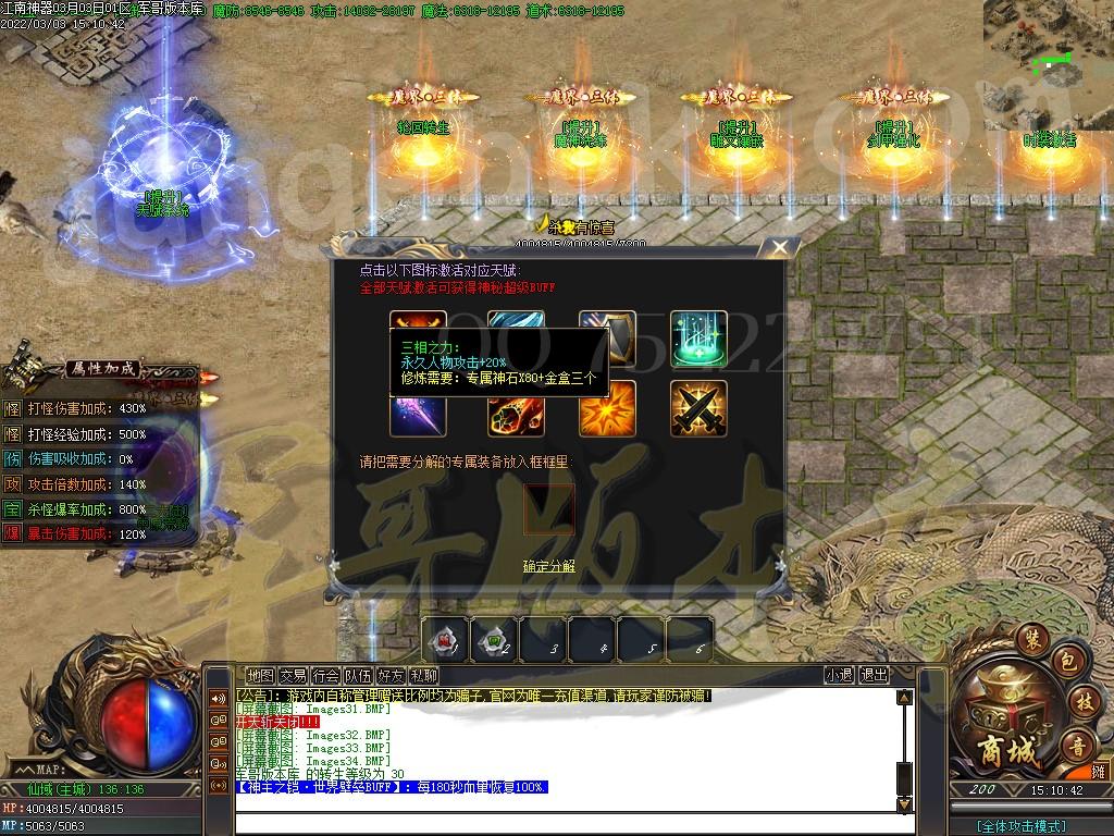 3.开启后1.1倍神力,全属性+50!对怪每刀真实伤害+1000