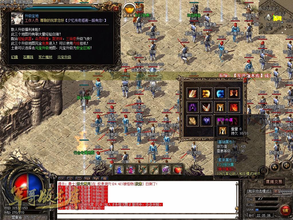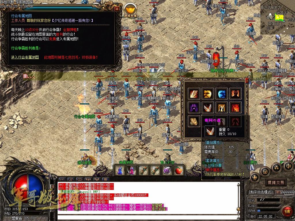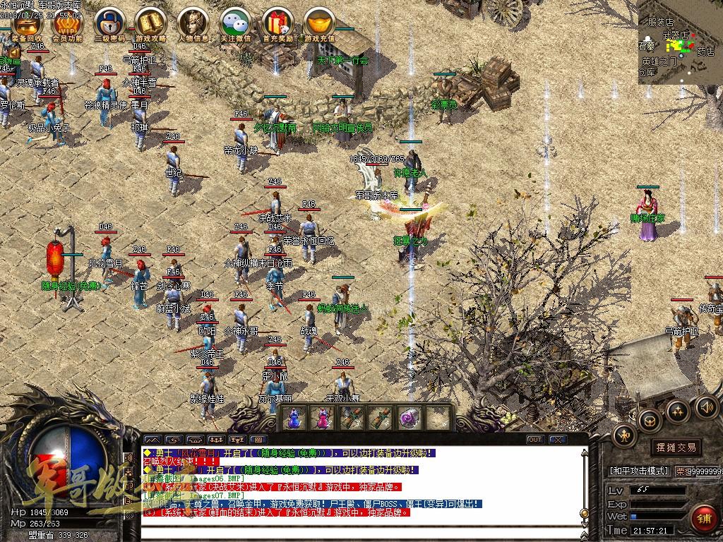 • 每天晚上10点20会开启行会争霸赛,赢得那一方行会,可以拥有专属地图的使用权利!免费进入地图,里面有很多BOSS。