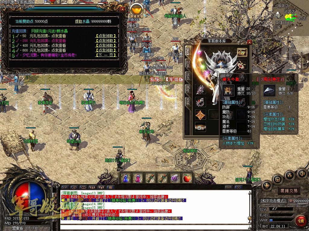 • 增加每日击杀奖励,散人杀50个BOSS免费奖励元宝与水晶哦。