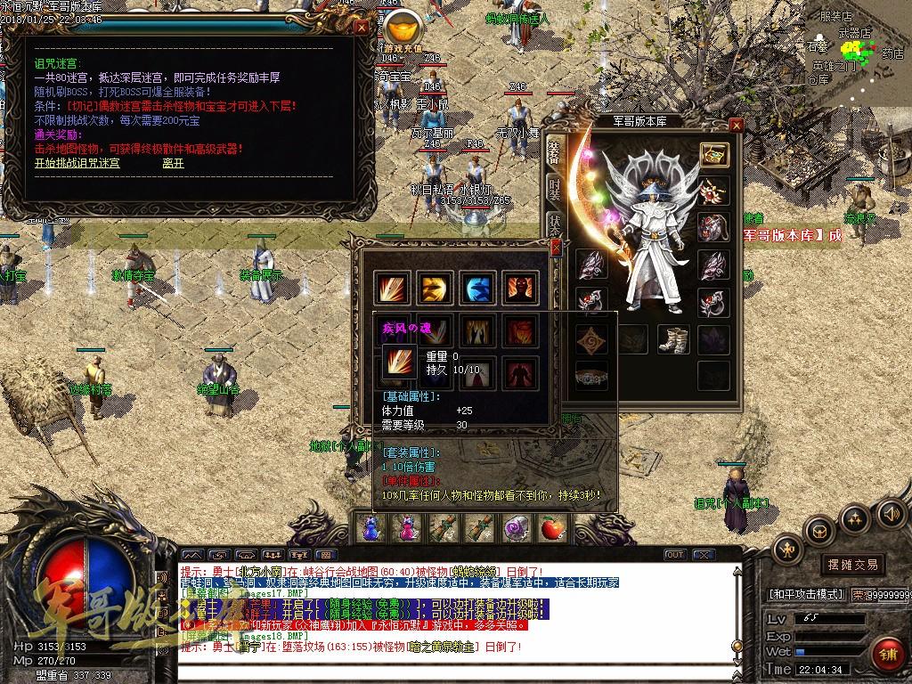 • 诅咒迷宫,无限制进入,一共80层,最后一层有BOSS,尸王[变异],最后一层可以领取奖励,必得一个小斗笠与随机技能卷!