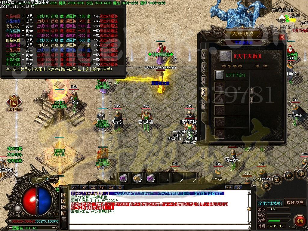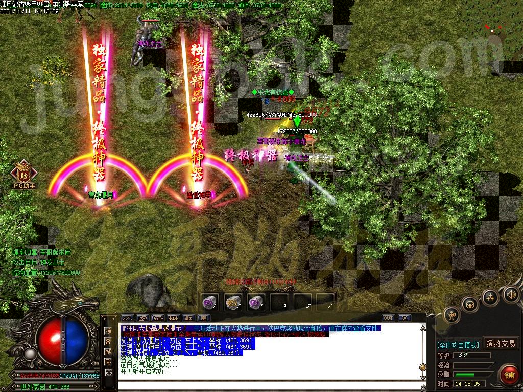 [BOOS介绍]本服BOOS种类多 ,增加了多种BOOS,从红色BOOS开始,,都有几率爆出终极。 增加打怪乐趣。。。