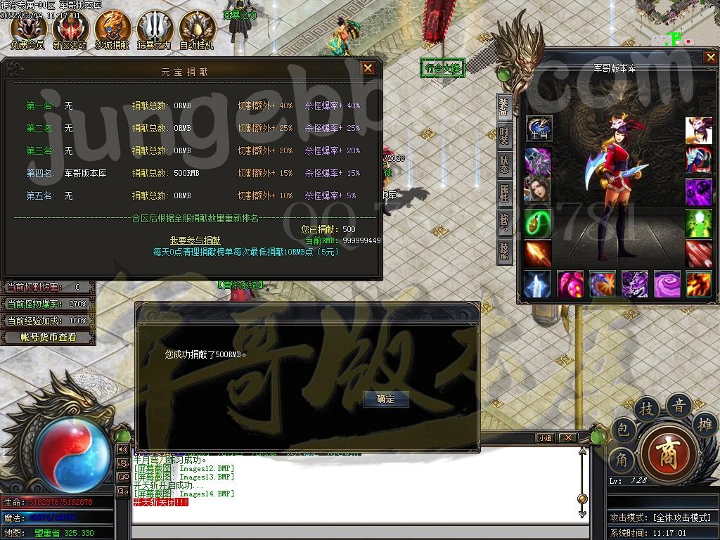 元宝----游戏主流货币,本服为90%元宝服,用途贯穿前中后期。(怪物大量爆出,到了后期元宝更是10W 20W的爆出!)