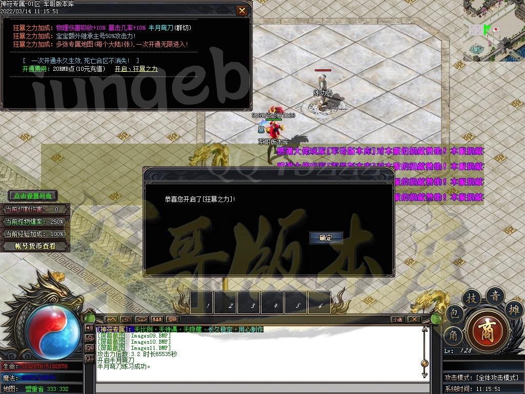 狂暴之力----一次开启永久生效!属性强悍并且有多张专属地图免费进!20开启,(10即可)!