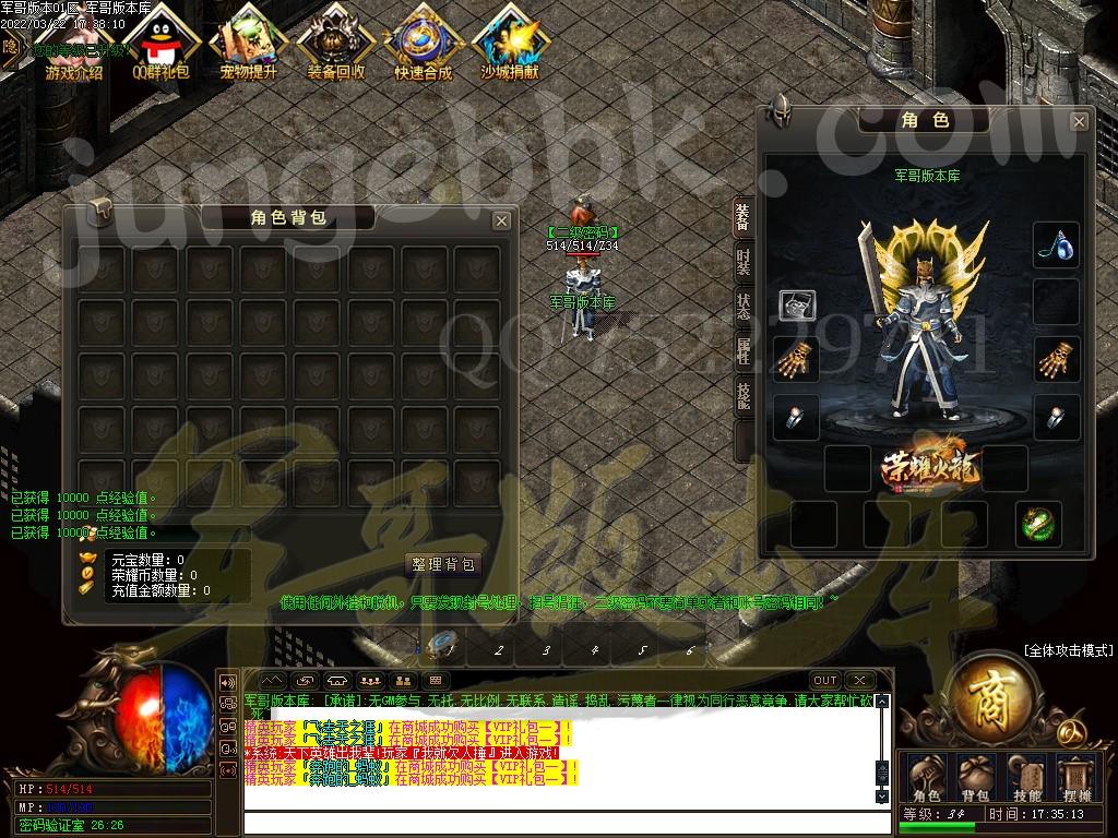金币充值比例 1 :10   版本为正常开区端有问题联系QQ 616102345  处理