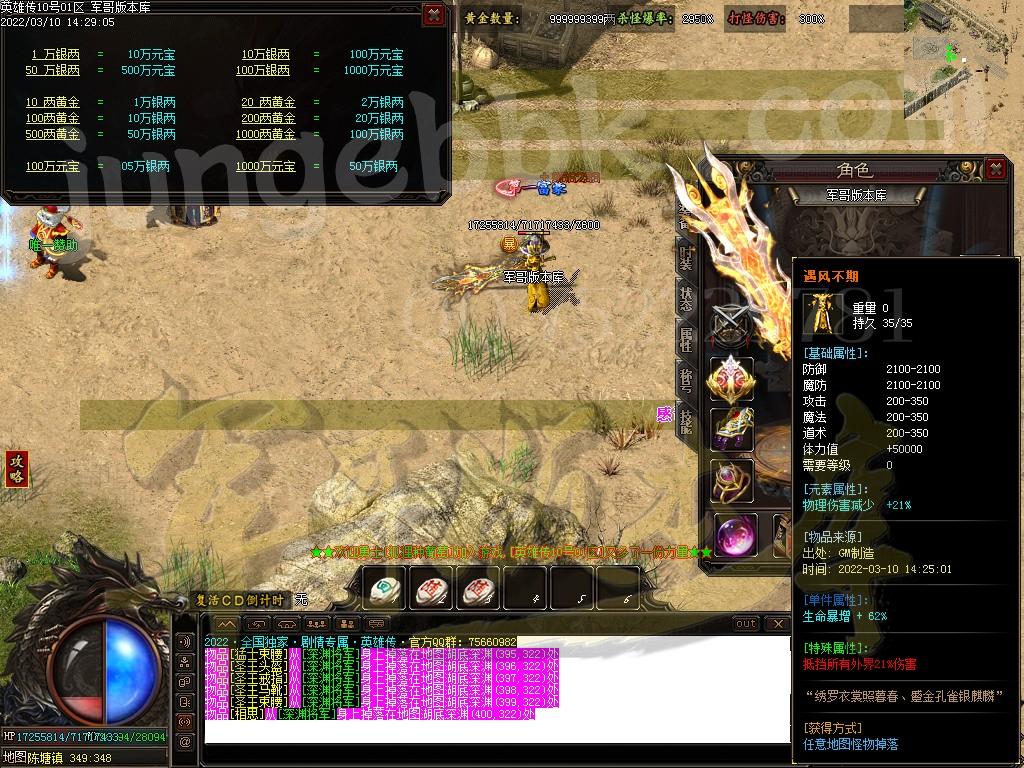 金币充值比例 1 :10   版本为正常开区端有问题联系QQ 616102345  处理