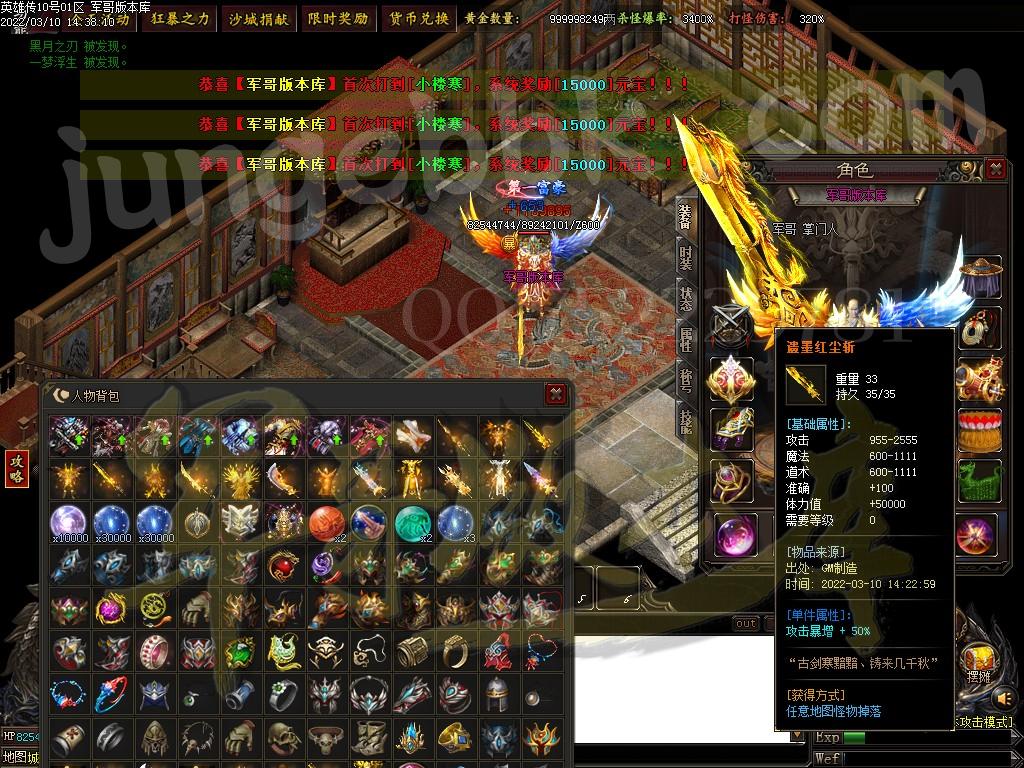 2.全网独家专属版本,永不关爆率,所有物品全部爆出,绝无任何合成!