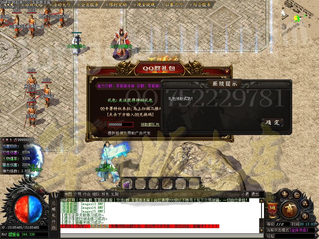 测试区打到的元宝钻石自动记录,区区十万元真实奖励!!!!!!建议玩家必打测试!!!!!
