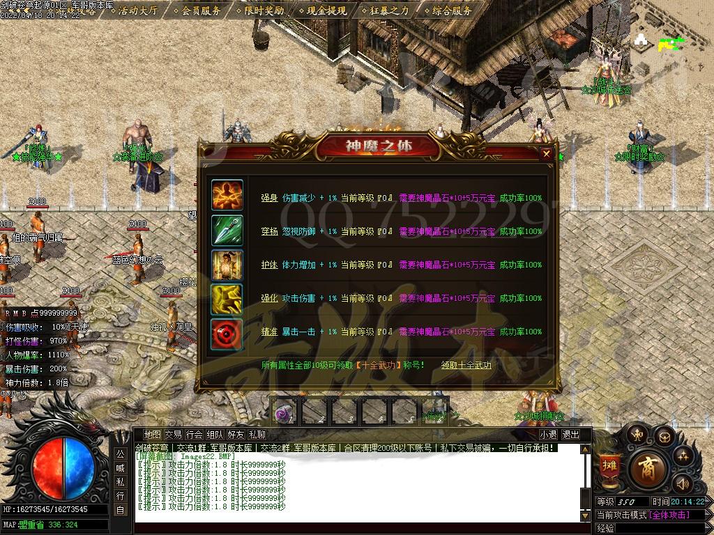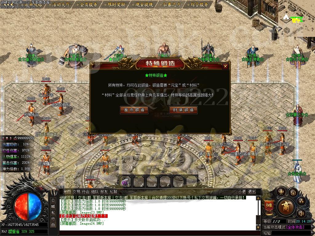 开区合区介绍: 本服每日5个新区,单区数万广告,所有区刷新的怪数量一摸一样,玩家不用担心玩4-6区会发育慢,越晚区刷怪时间越短,爆率越高,保证公平!!!