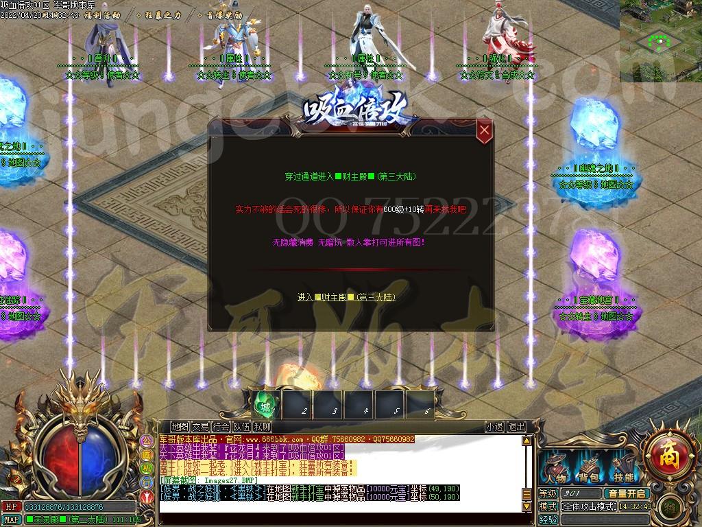〖玩法 介绍〗:共3个大陆,每个大陆地图散人都可以进,无任何隐藏地图。所有怪物都有几率爆终极装备