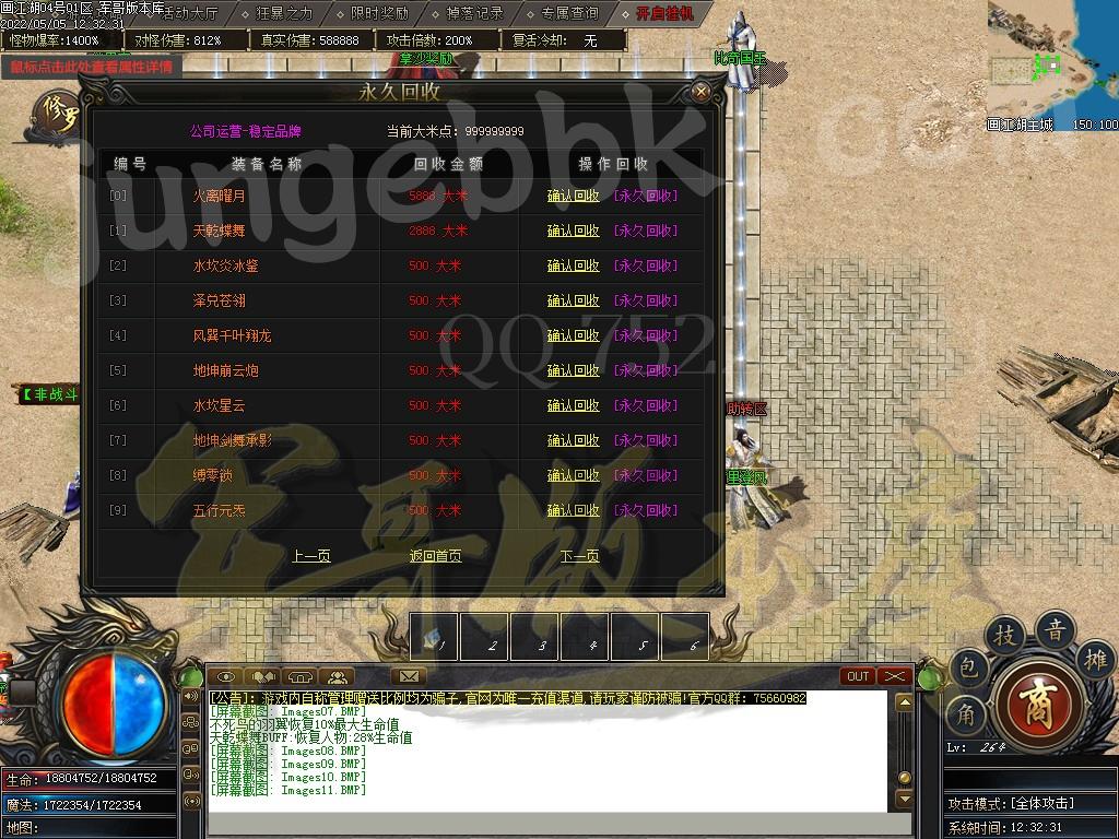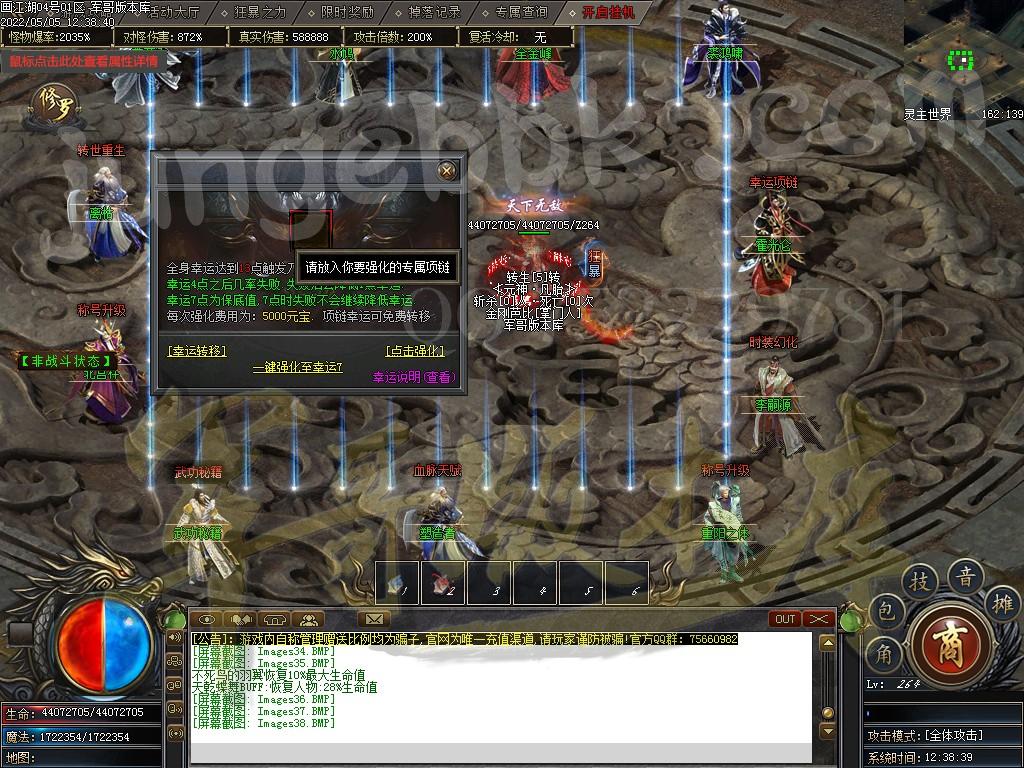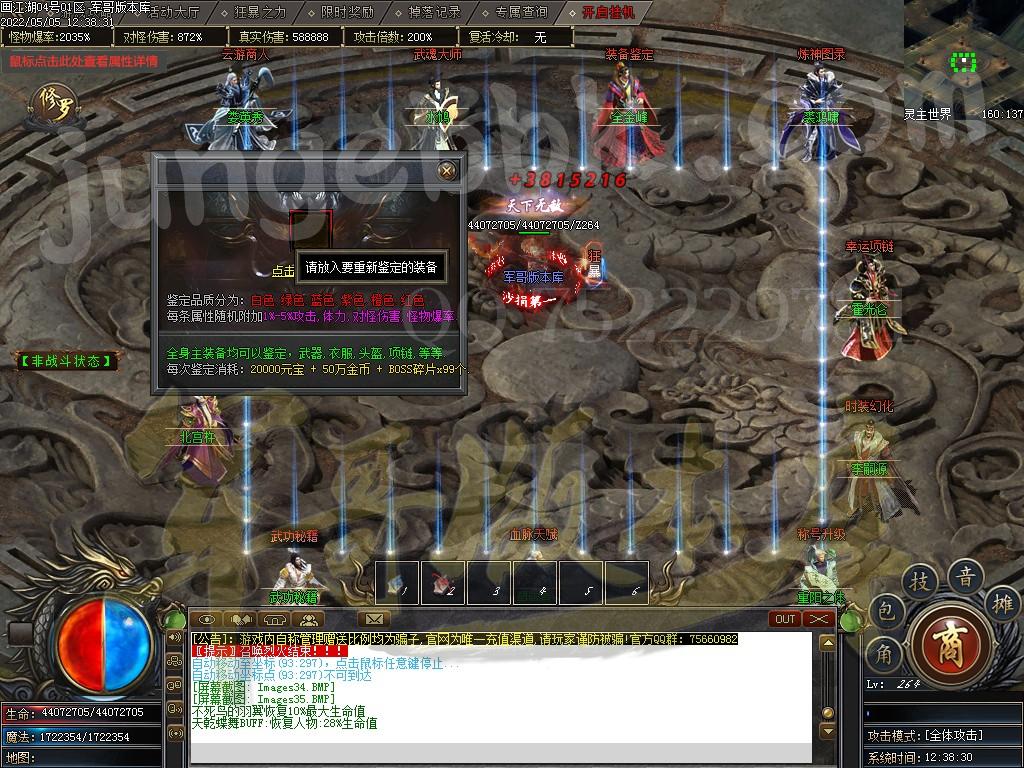 前期推荐:优先鉴定装备,可随机给与1/-5%的攻击体力,对怪伤害,怪物爆率等!