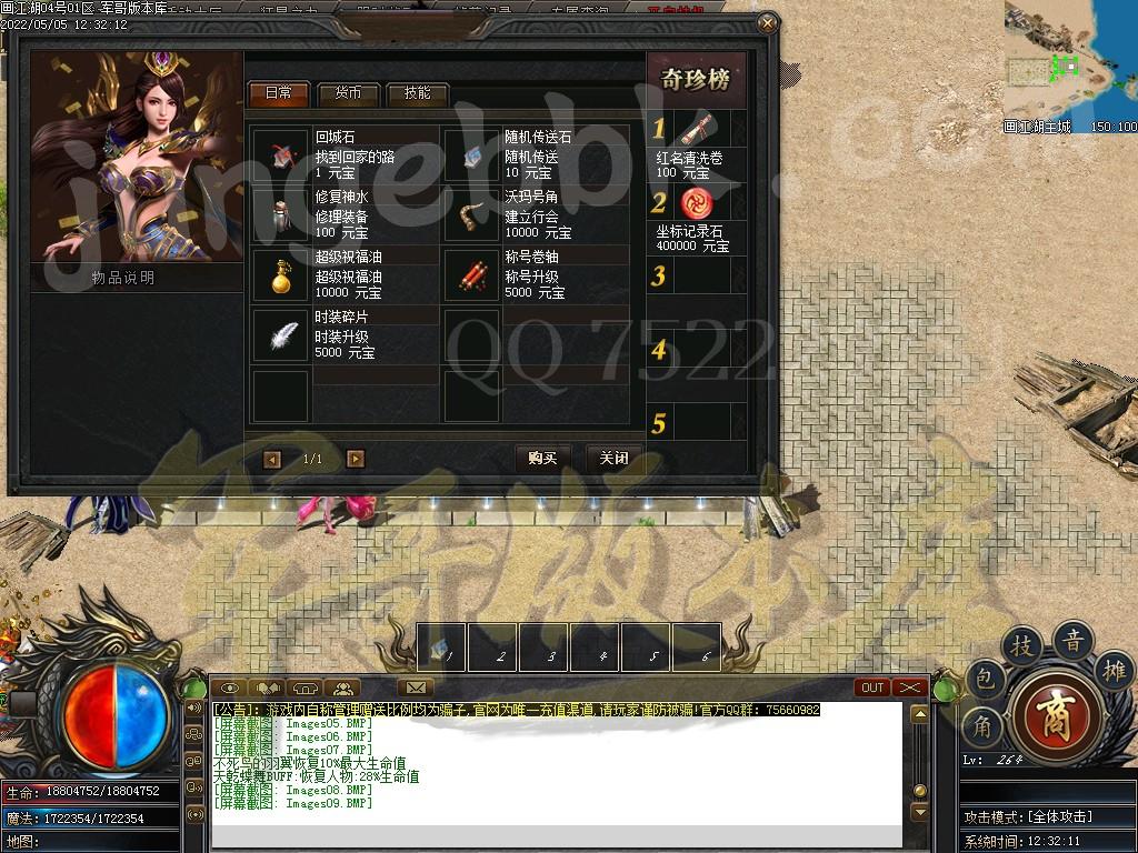 金币充值比例 1 :10   版本为正常开区端有问题联系QQ 616102345  处理