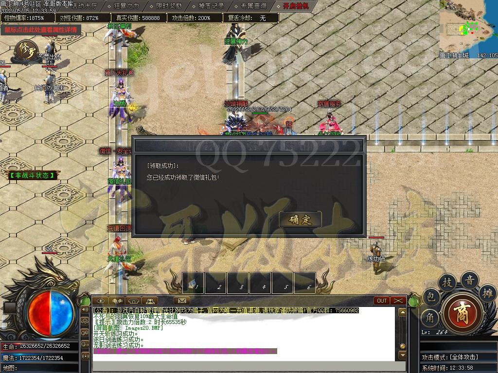 1.开局,微信礼包、Q群礼包、 都领取了。