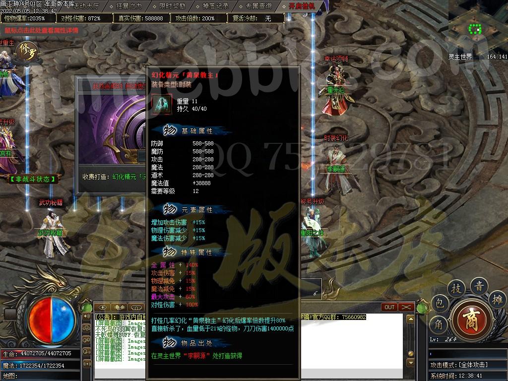 3..时装幻化升级可提升幻化高度,幻化的越高触发几率越高可直接变身,变身后打怪伤害大大提升,爆率是人物所有的加起来翻倍增加!
