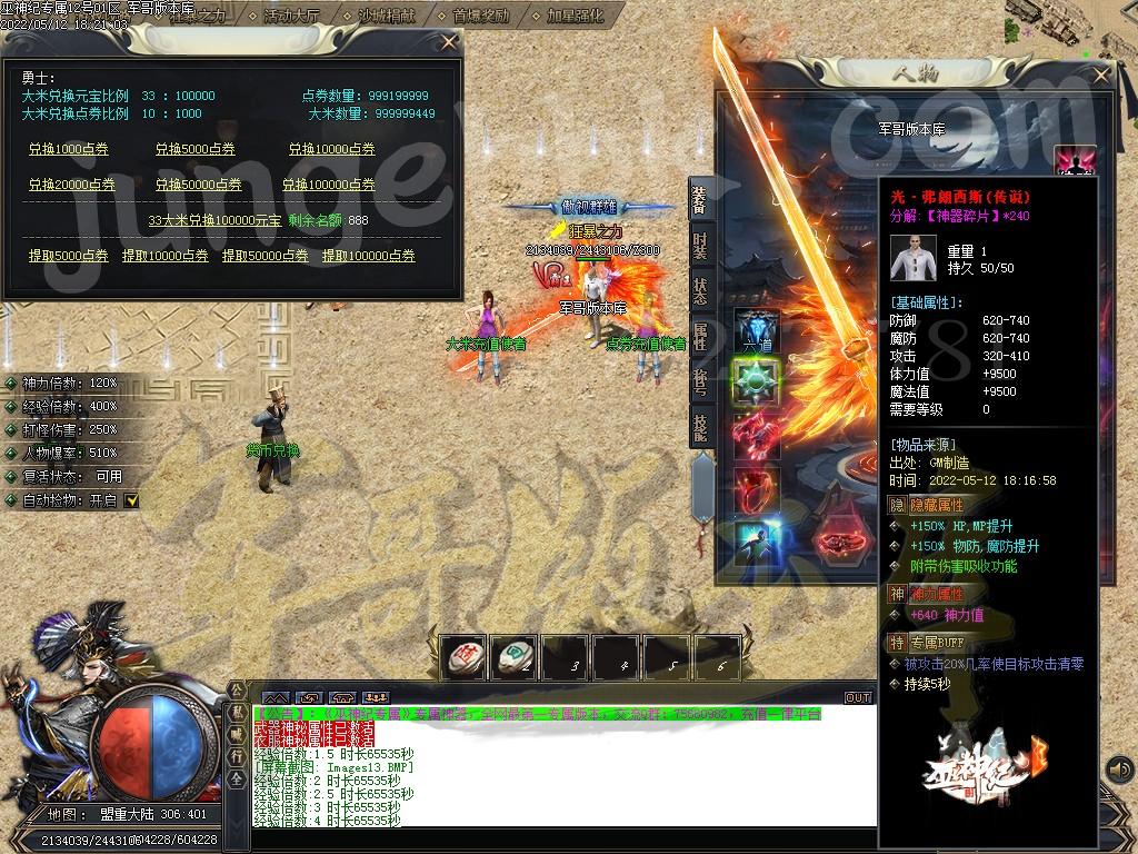 金币充值比例 1 :10   版本为正常开区端有问题联系QQ 616102345  处理