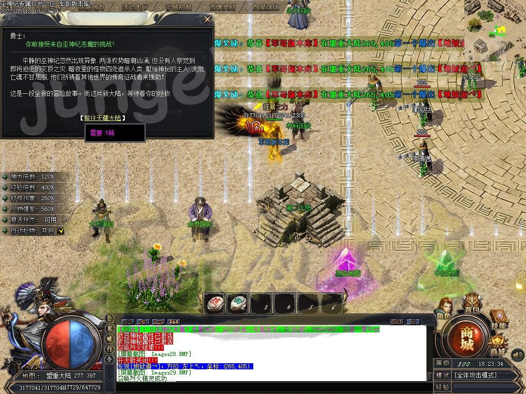 5,超级BOSS: 游戏里每个大陆都有2个专属BOSS,其中一个是固定坐标,另外一个随机刷(防止大号卡点,谁能找到就是谁的)。