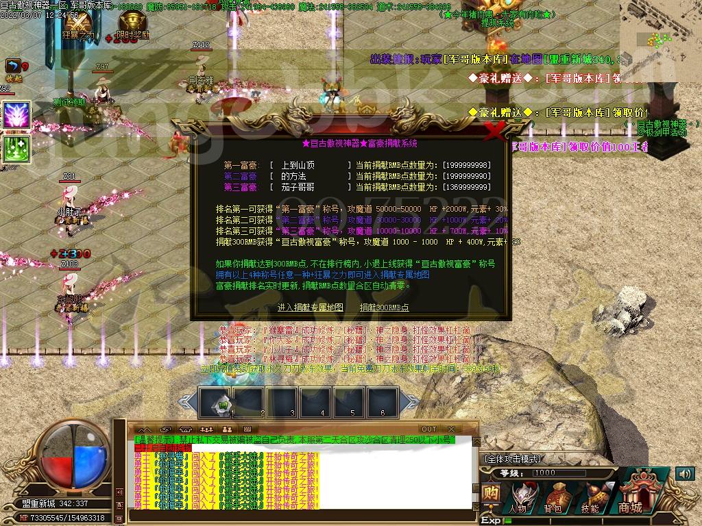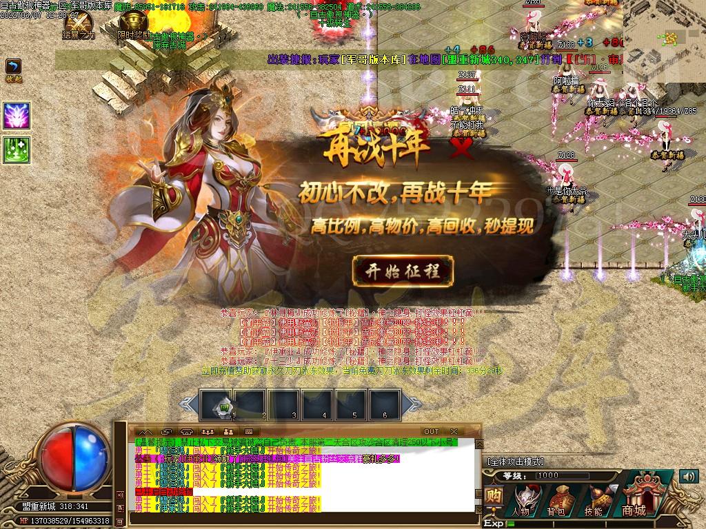 金币充值比例 1 :10   版本为正常开区端有问题联系QQ 616102345  处理