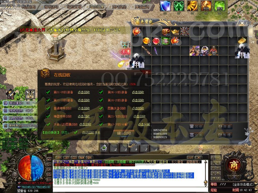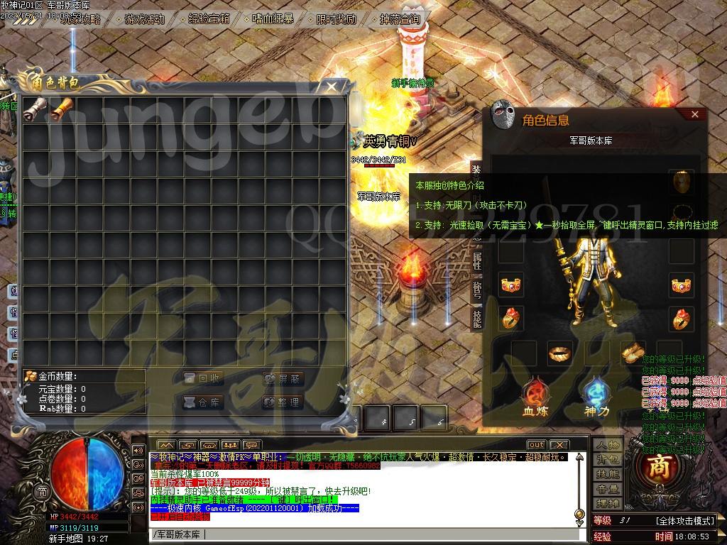 [GOM引擎] 19-902独家牧神记无限刀神器单职业传奇版本-带假人-ESP插件-光柱-自动回收