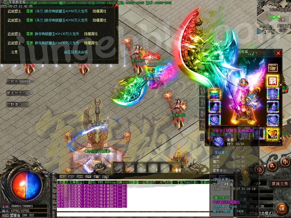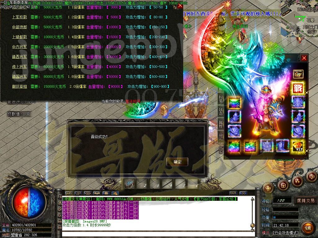 【内容】:充值回馈调整;装备属性调整同等装备无秒杀;怪物属性与爆率调整