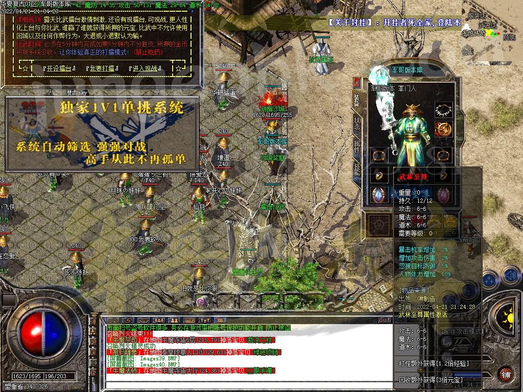 版本内包含三个压缩包,分别是PG插件,95插件,esp插件的版本,开区使用什么插件拿对应插件的版本即可使用! 【特别提示】:新版独176复古,为散人量身定做,等级好升,内置挂机辅助,适合上班族 【特别提示】:本服等级非常的重要,高等级地图爆极品赤月,50级免费领取屠龙类武器! 【元宝比例】:元宝比例1:200 测试多送20%元宝,首充30,500满赞助。无任何暗坑,长久稳定! 【游戏简介】:每天四个新区,海量广告宣传,第二天下午合区,第三天激情沙巴克,保证区区人气火爆。 【装备层次】:沃玛-祖玛-赤月-屠龙终极,小极品最高+5 ,极品装备全靠爆! 【战士特色】:战士前期发展比较困难,中后期的王者,野蛮带麻痹效果,双烈火可秒道法。 【道士特色】:道士打宝PK都很犀利(单挑一切BOSS),后期伤害很高,加强神兽和施毒术的威力。 【法师特色】:法师前期优势较大,练级刷图猥琐发育,中期可以转职,后期法团伤害爆炸。 ============================================================