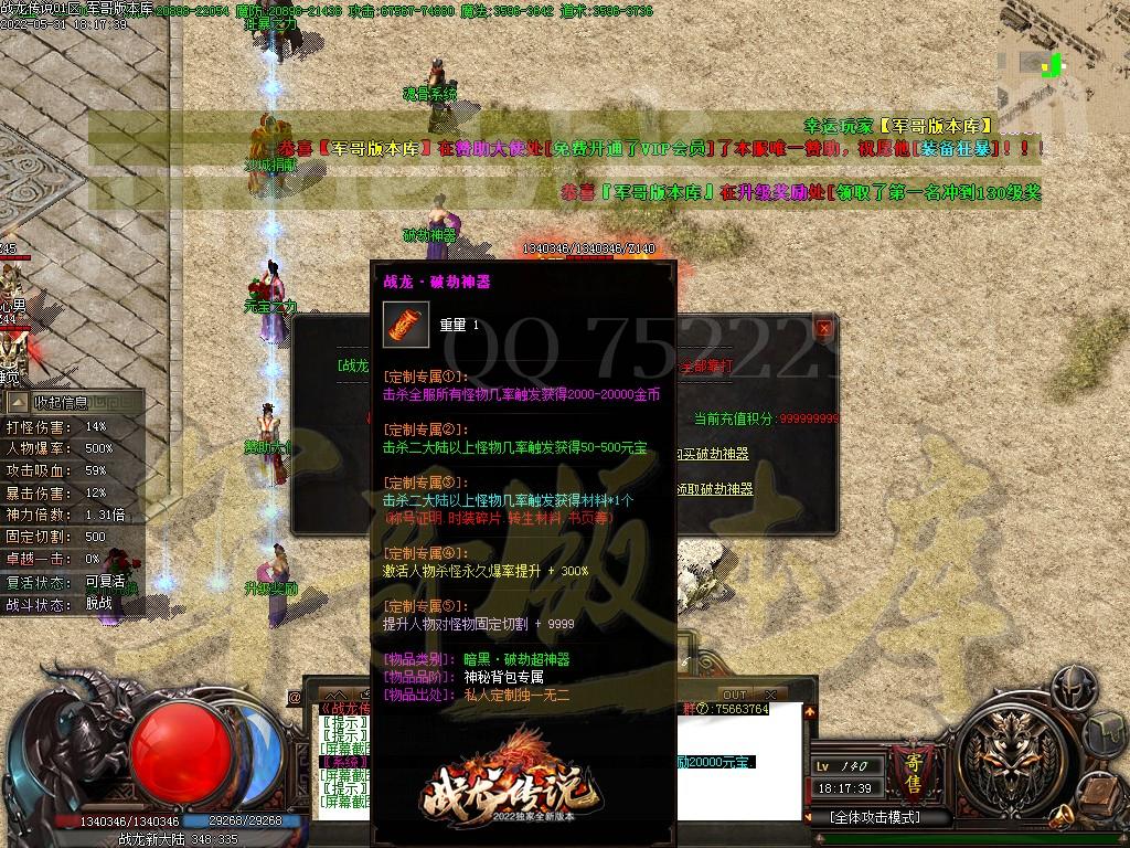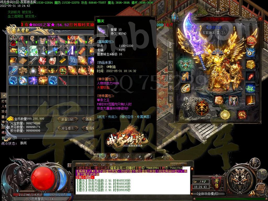 [GOM引擎] 19-939独家战龙传说2022专属激情单职业传奇版本-带假人-ESP/PG/95插件-光柱-自动回收