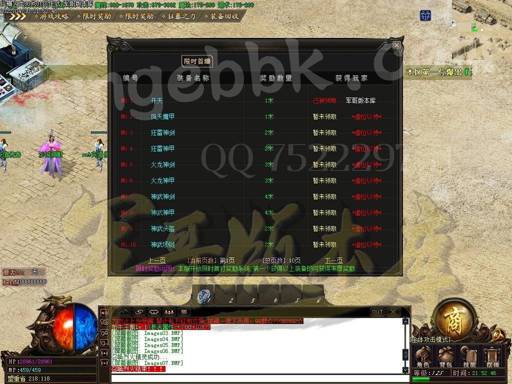 金币充值比例 1 :10   版本为正常开区端有问题联系QQ 616102345  处理
