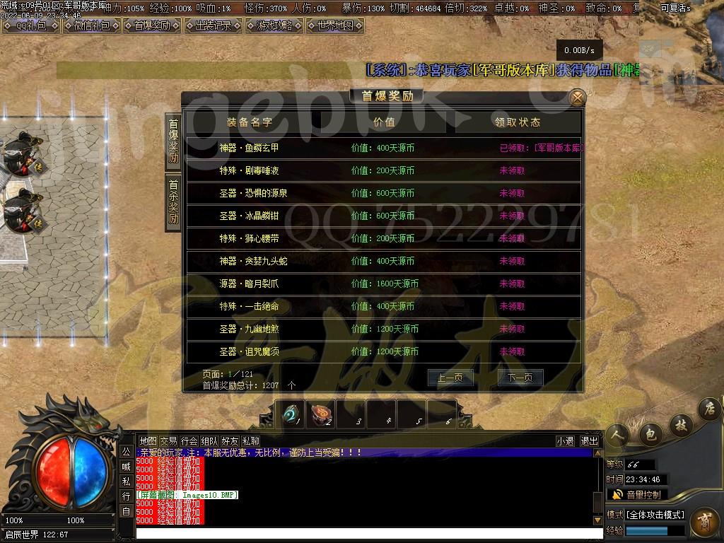 金币充值比例 1 :10   版本为正常开区端有问题联系QQ 616102345  处理