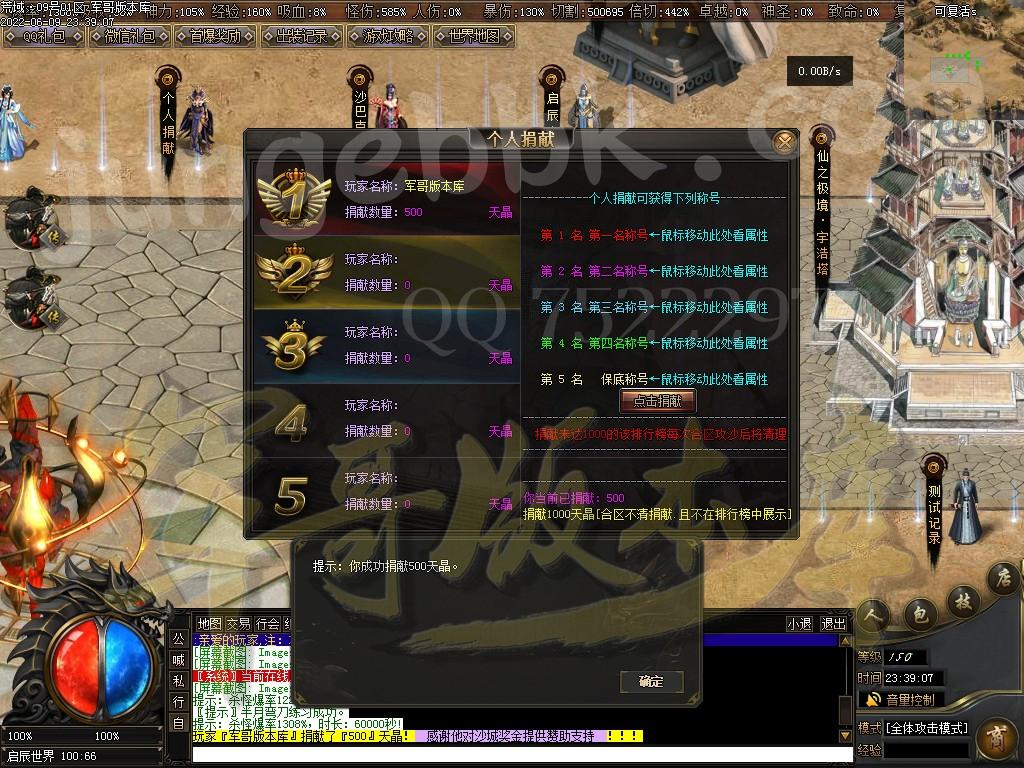 3.个人捐献: 1000天晶【100充值】【永久第一】【送半月】